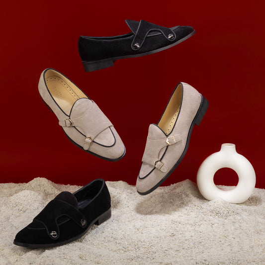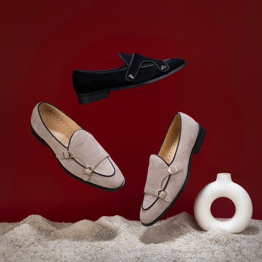 Sapphire Luxe Batwing Double Strap Monk Shoes For Men
