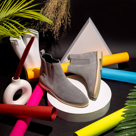 Sapphire Velour Corine Coal Chelsea Boot For Men