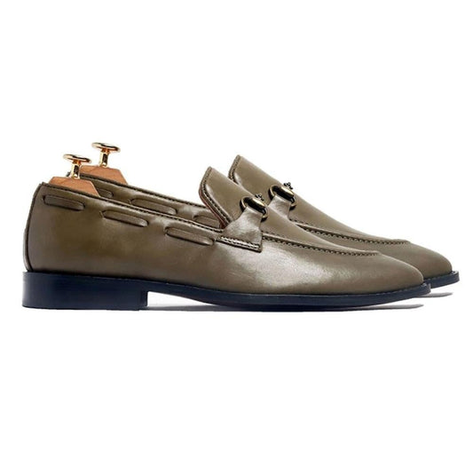 Taquila Lorenzo Olive Belarus Imported Crust Leather With Horse Bit Loafers Shoes For Men