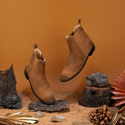 Velour Cocoa Tangerine Brushed Shaded Belgian Double Strap Shoes For Men