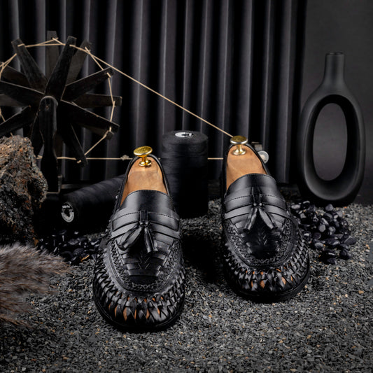 Mario Morato Hand Woven Coal Tassel Loafers For Men