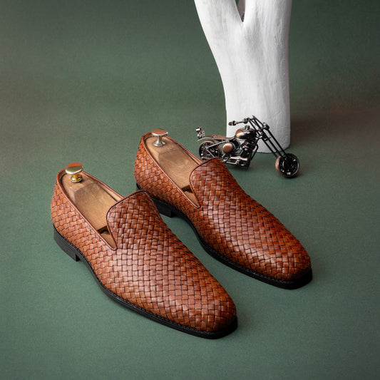 Maroush Burnished Hand Woven Slipon Loafers Shoes For Men