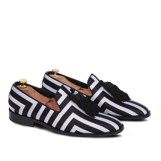 Jaquard Matrix Bullion Tassel Loafers Shoes For Men