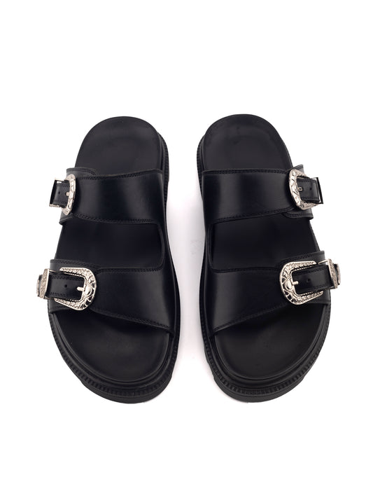 FAENTINI DUST THE COW BOY DOUBLE BUCKLE BLACK SLIDER
