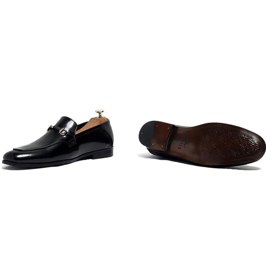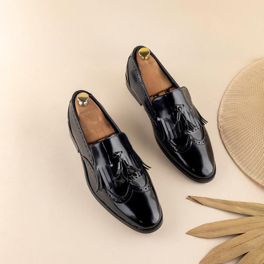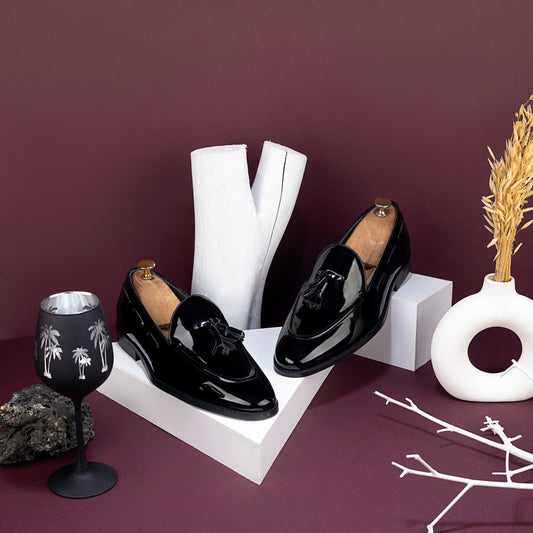 Tangerine Increspo Glossy Black Belgian Loafers For Men