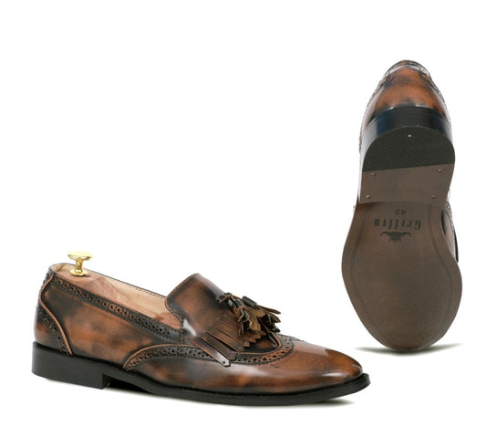 Belgian Split Tone Cocoa Slipon Loafers For Men