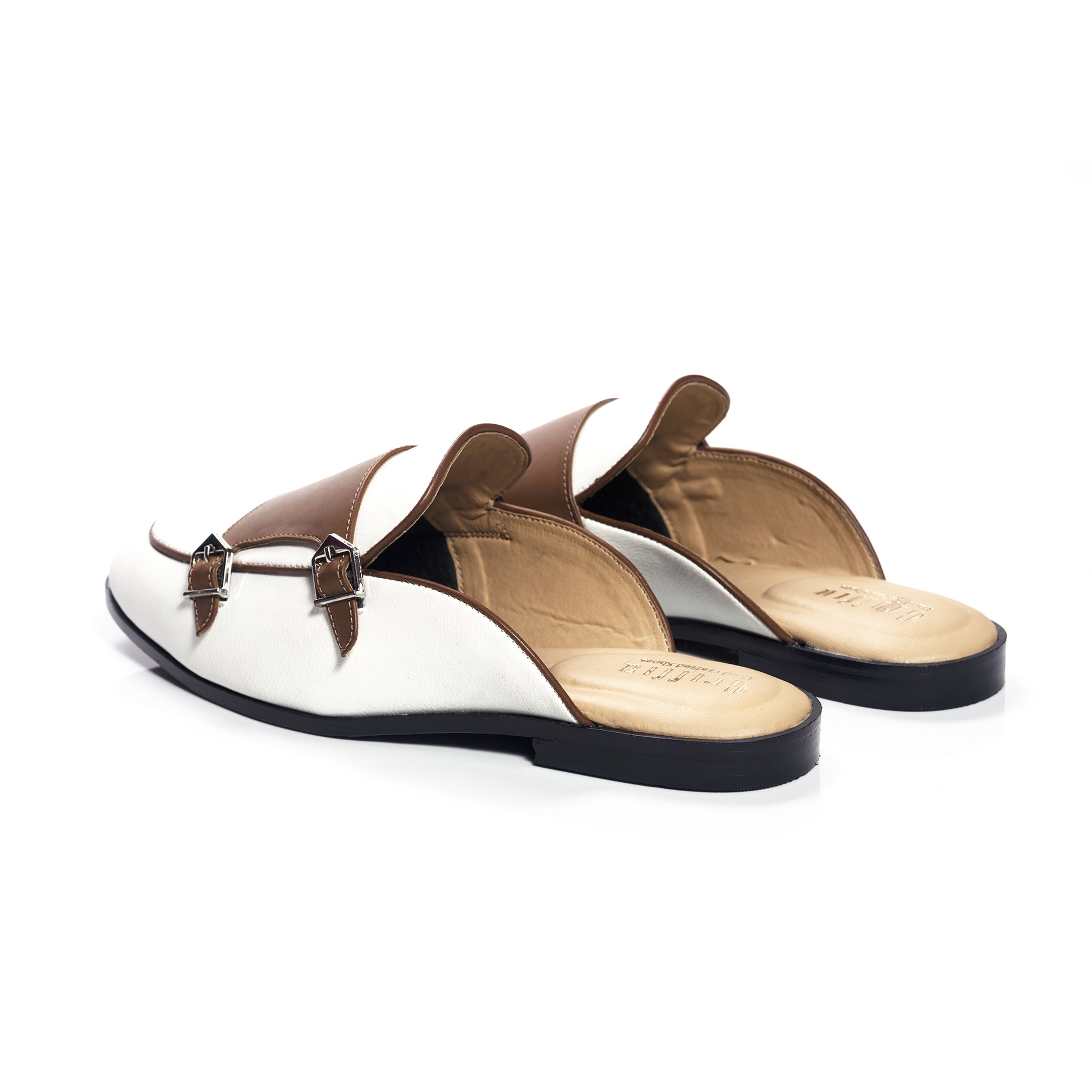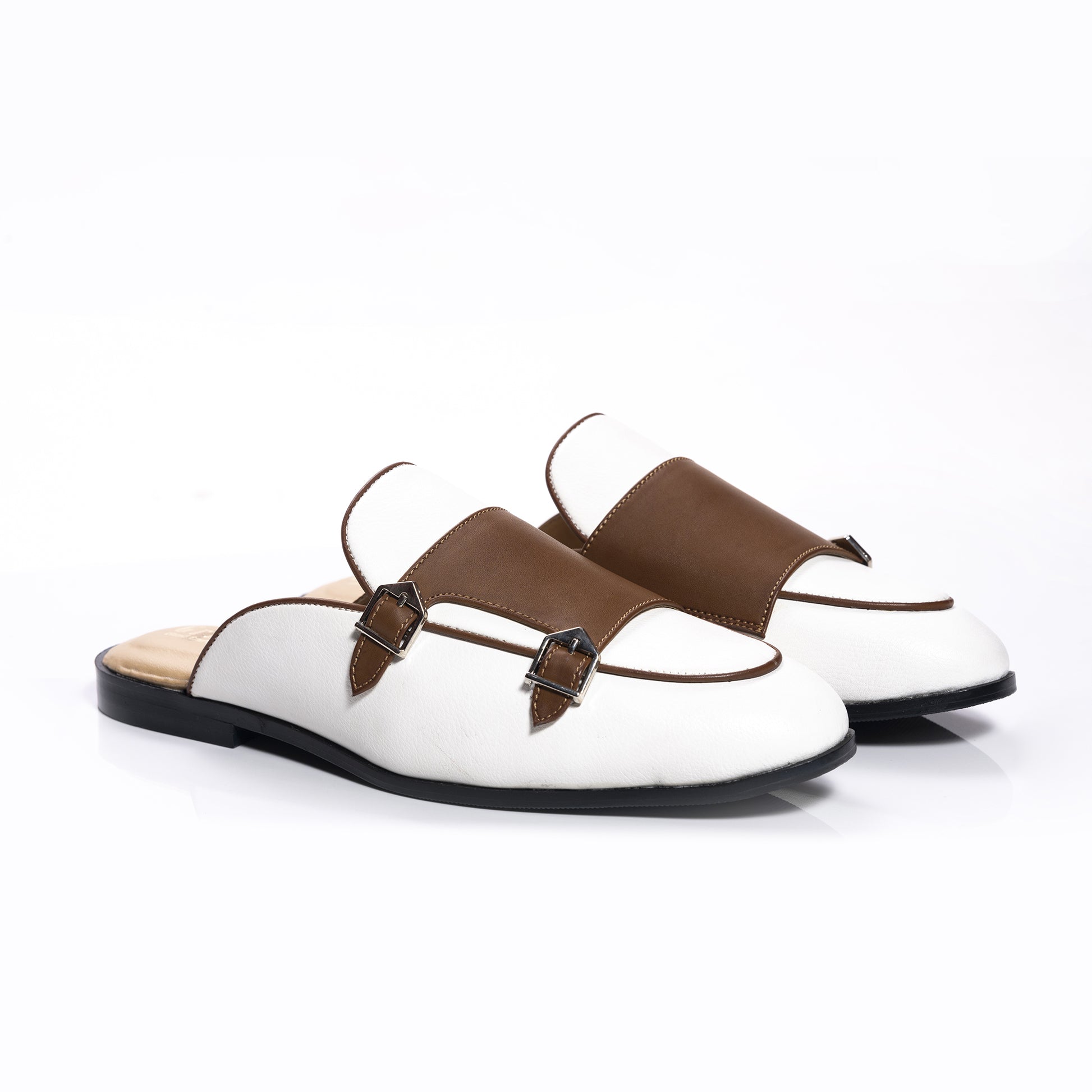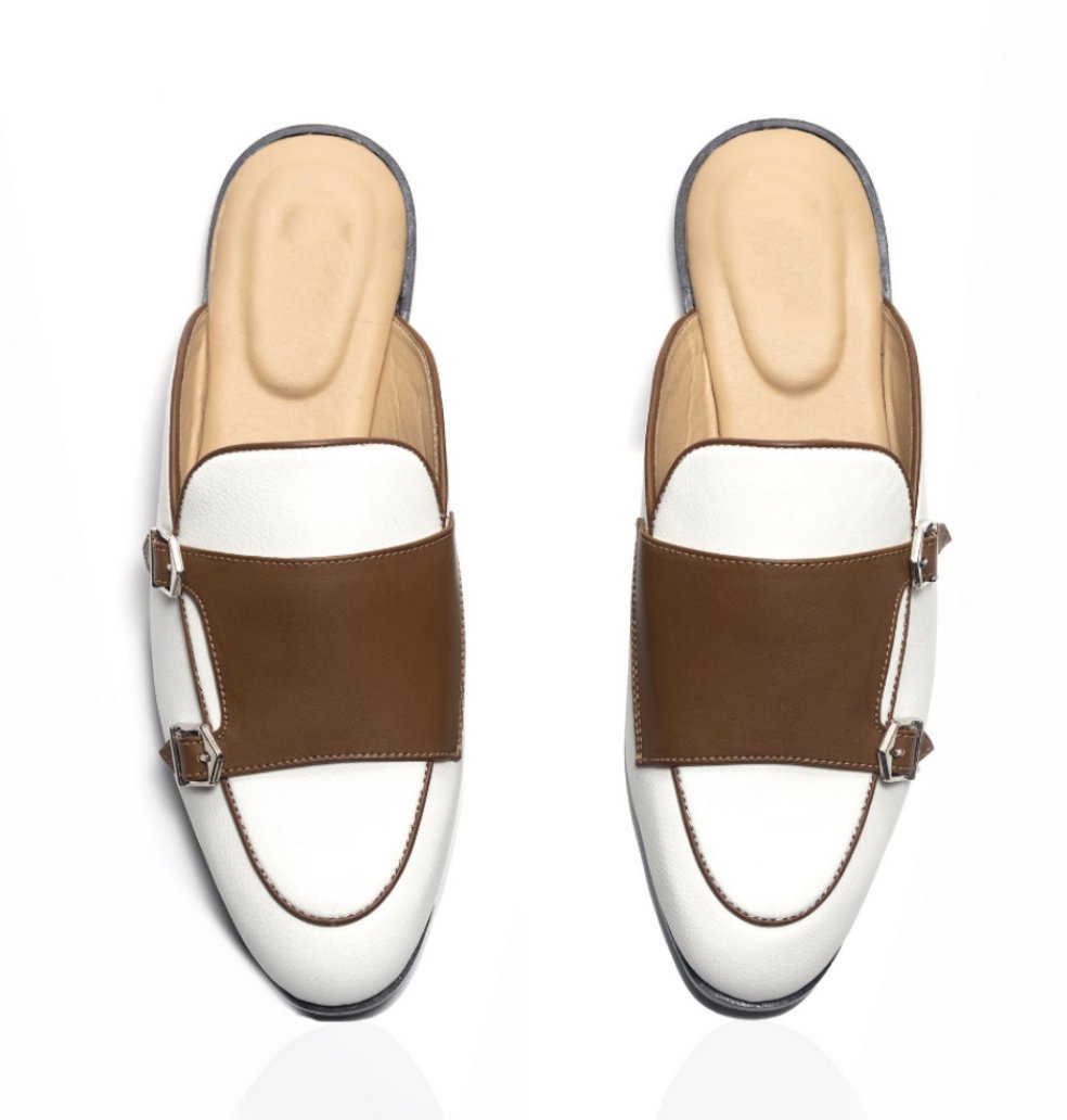- White Tan Batwing Monk With Silver Buccle