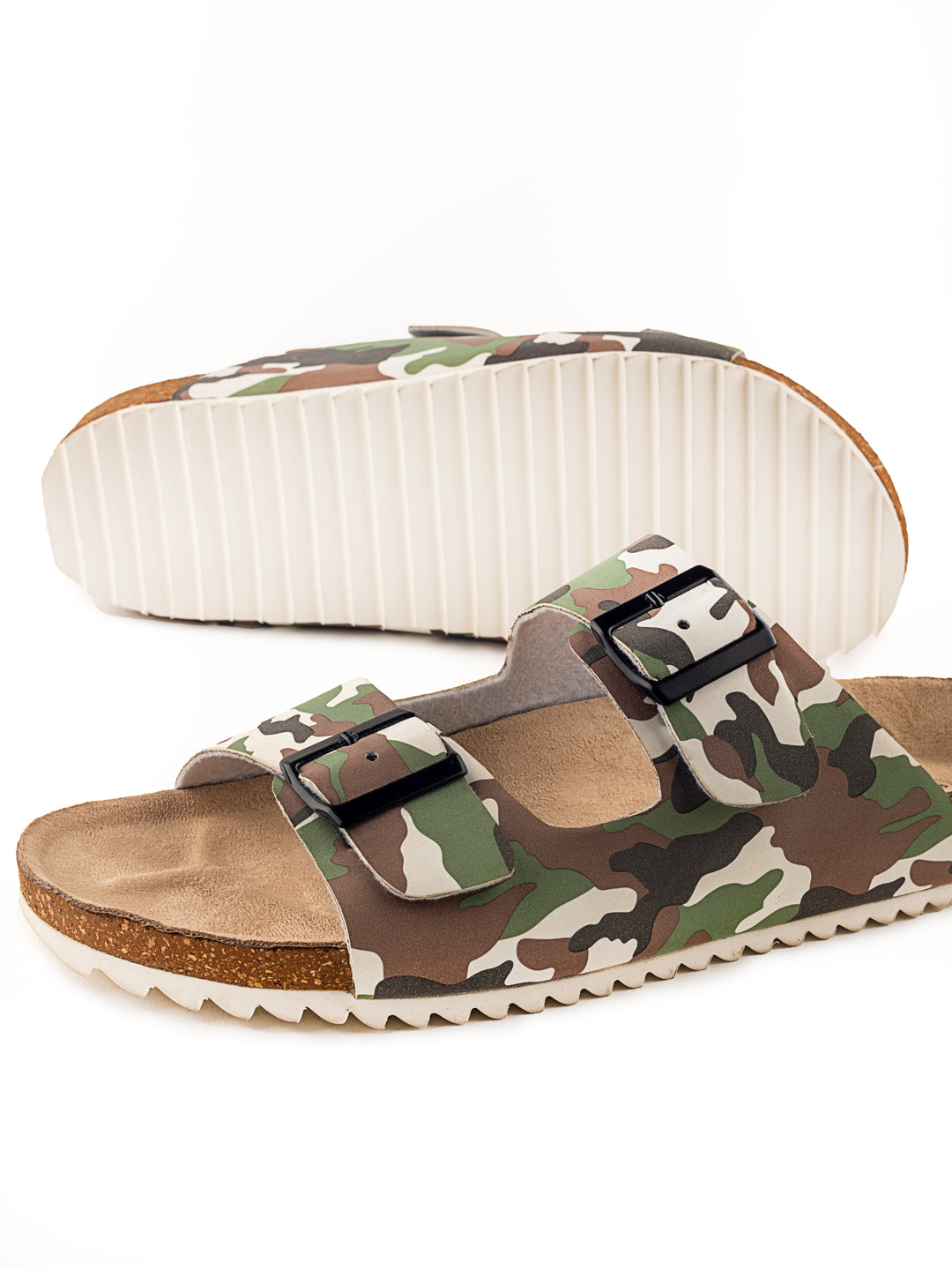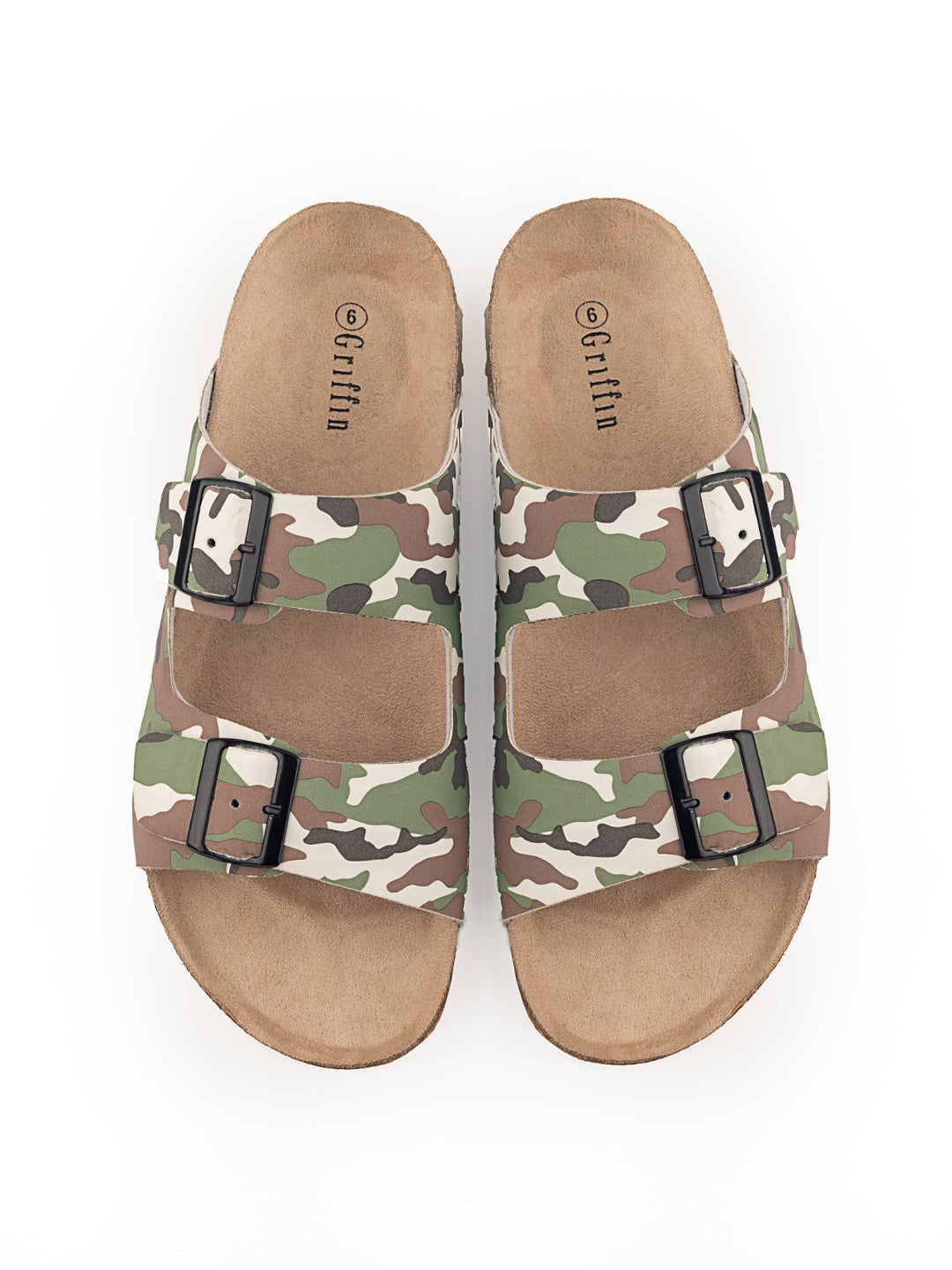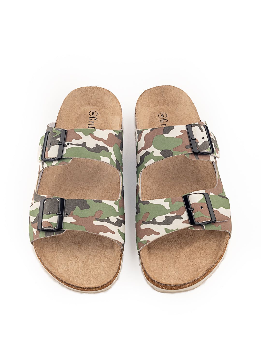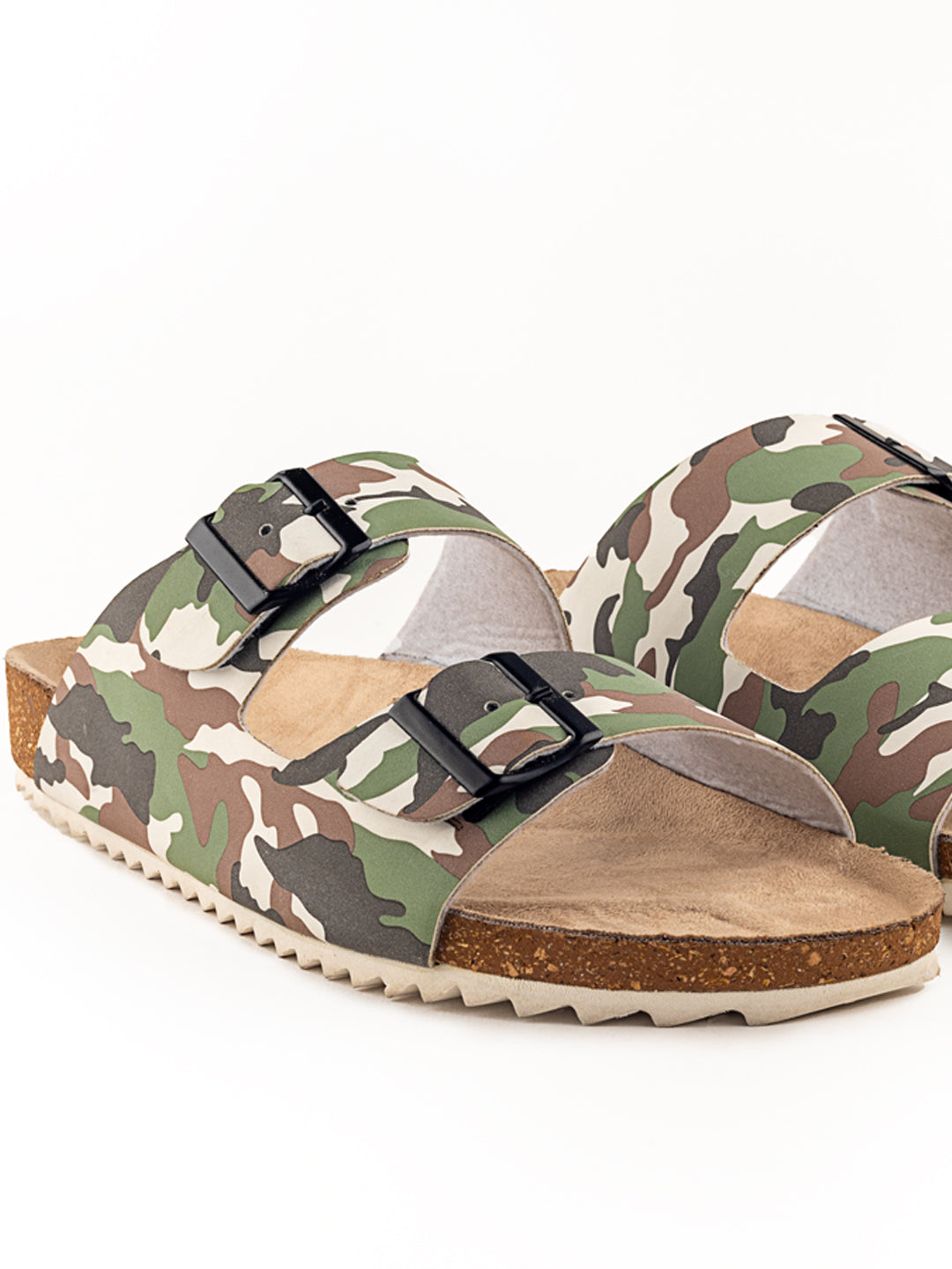 • The double buckle with Faux leather strap transitions to a beautiful CAMOUFLAGE MULTI colour tone throughout the body of the slider.