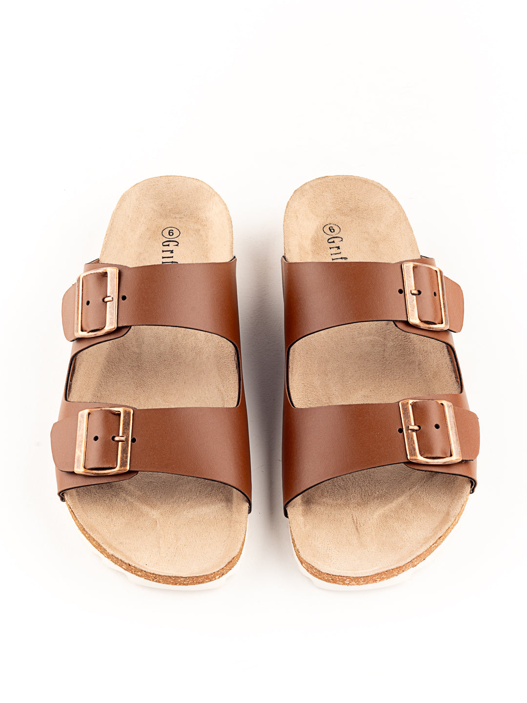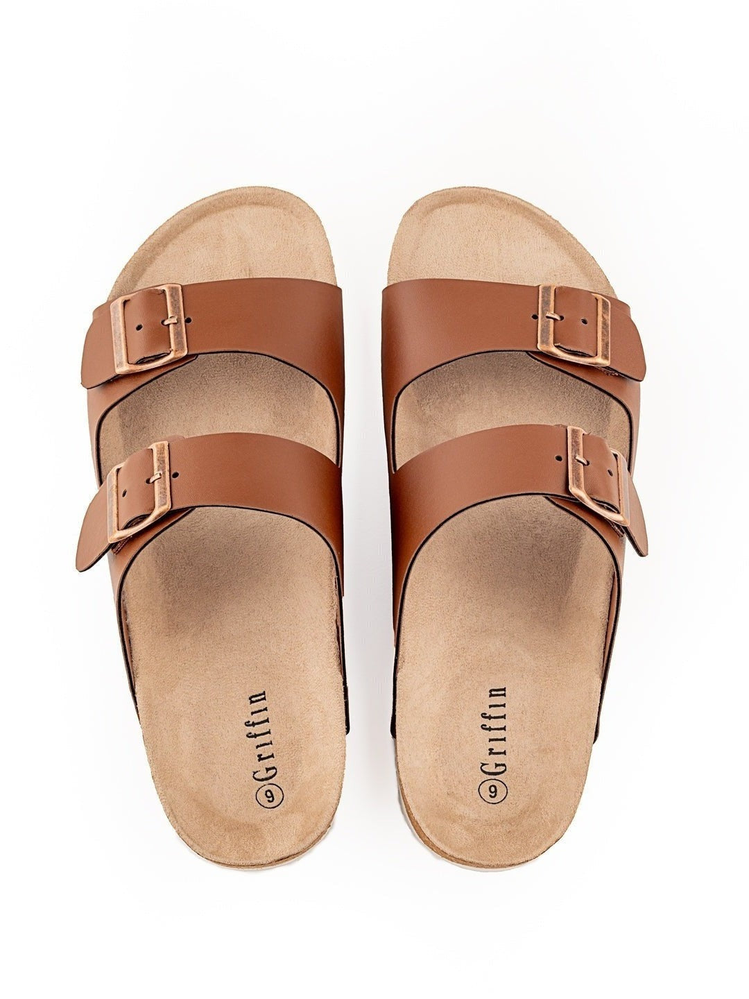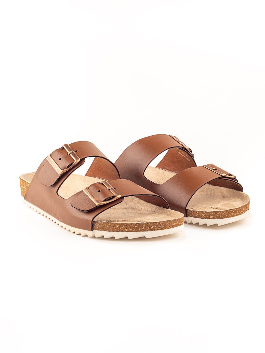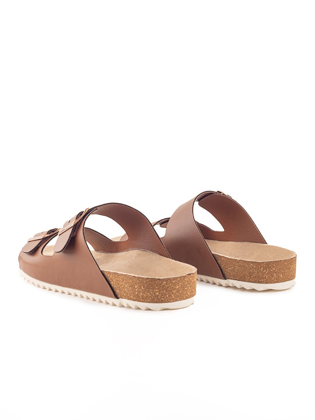 • The double buckle with Faux leather strap transitions to a beautiful TAN colour tone throughout the body of the slider.