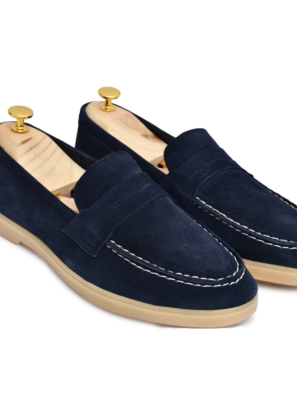 - The Navy Blue colour suede with honey colour sole transitions to a beautiful Navy Blue tone throughout the body of the shoe.