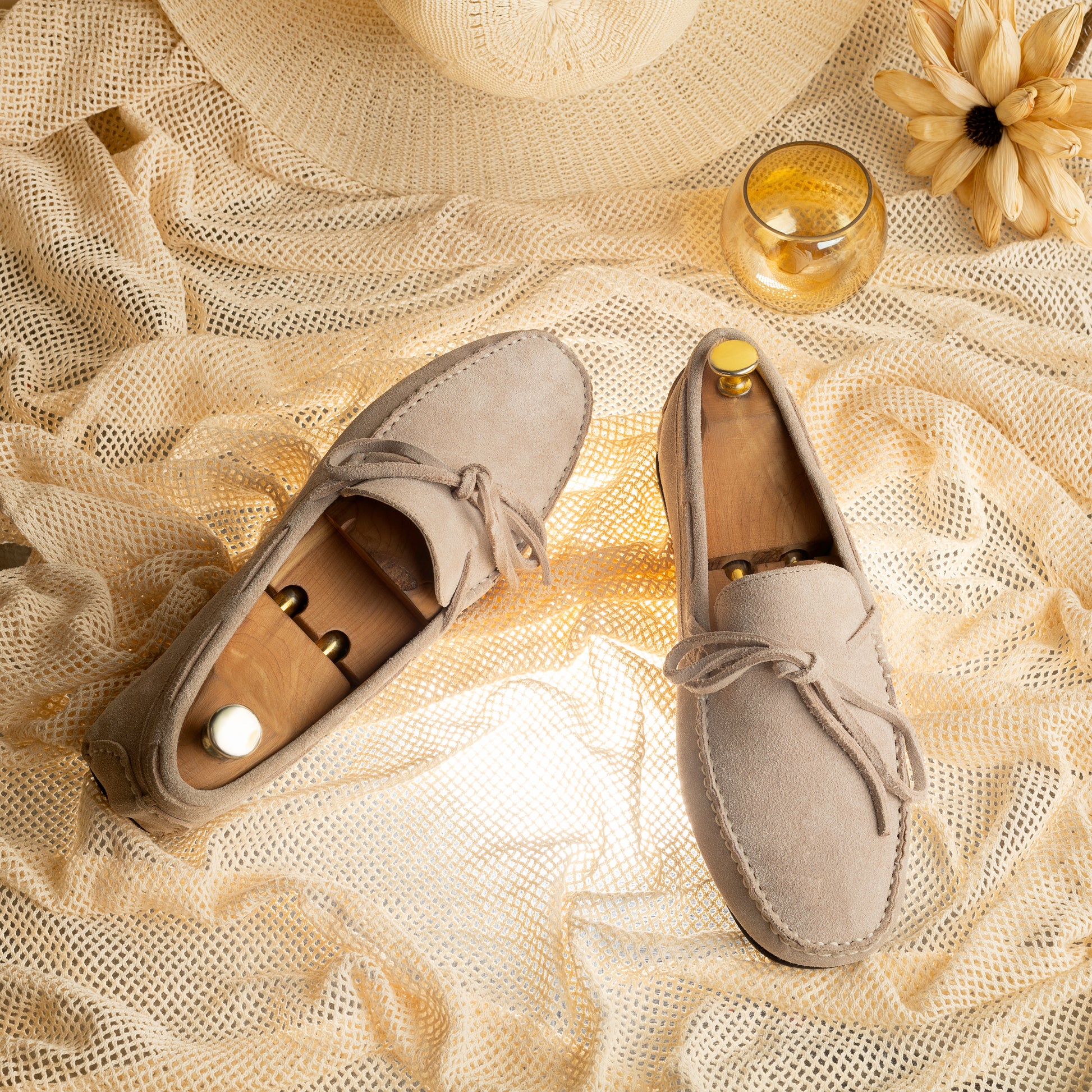 - SAND-DUST DRIVING LOAFERS WITH TIE LACE ON TOP