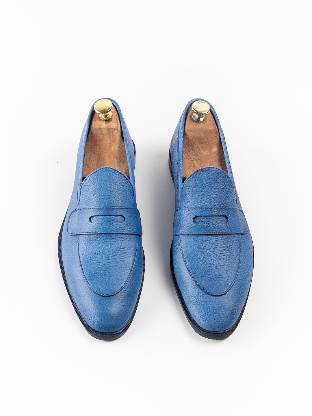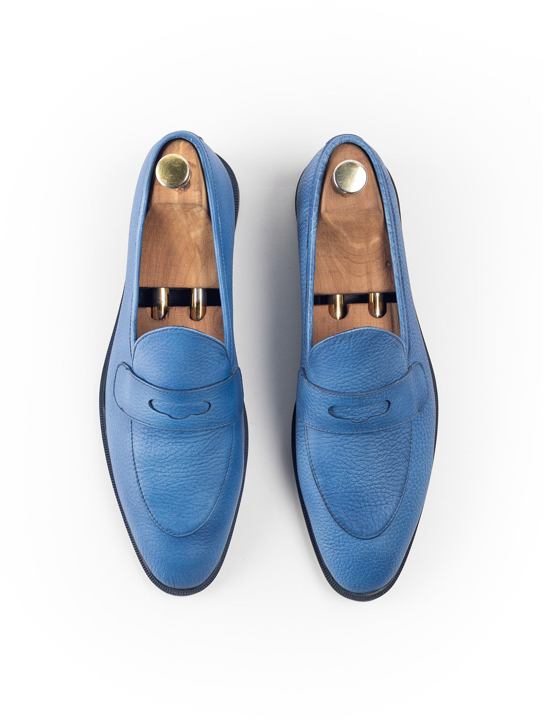 STYLE- POOL PARTY/BEACH WEAR THE G-GRAIN PENNY LOAFERS IN WASHED IN BLUE TONE WHICH GOES ON YOUR ALL DENIMS