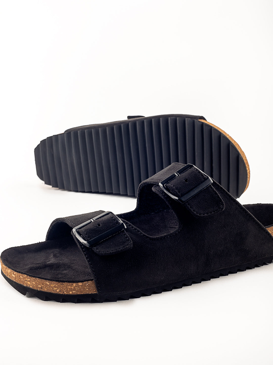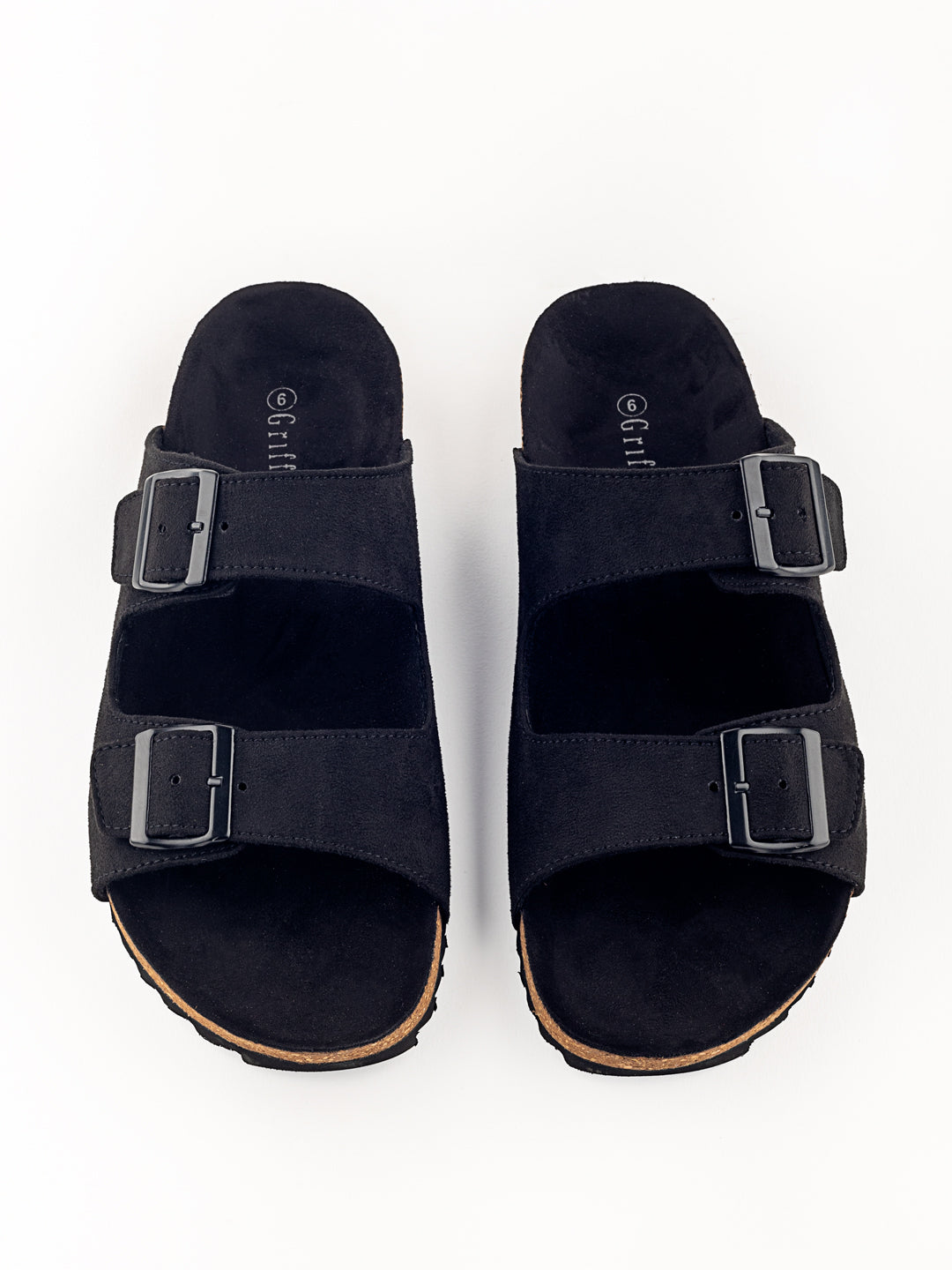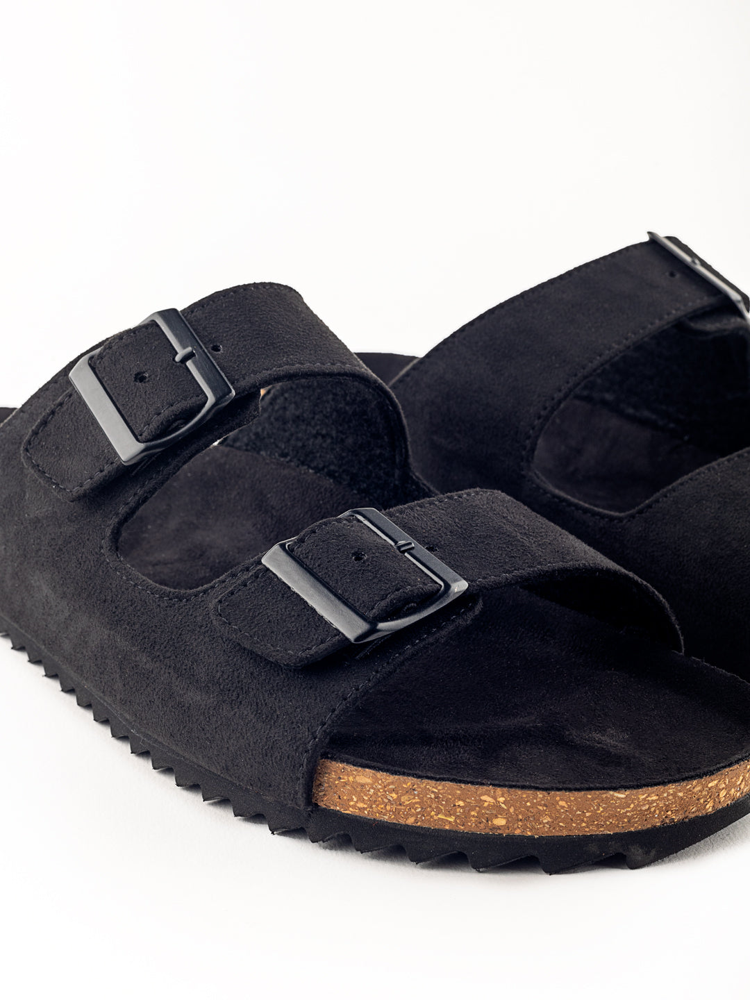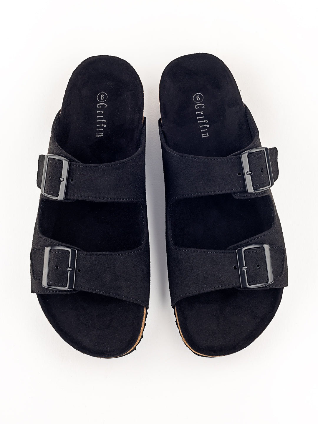 • The double buckle with Faux suede leather strap transitions to a beautiful black colour tone throughout the body of the slider.