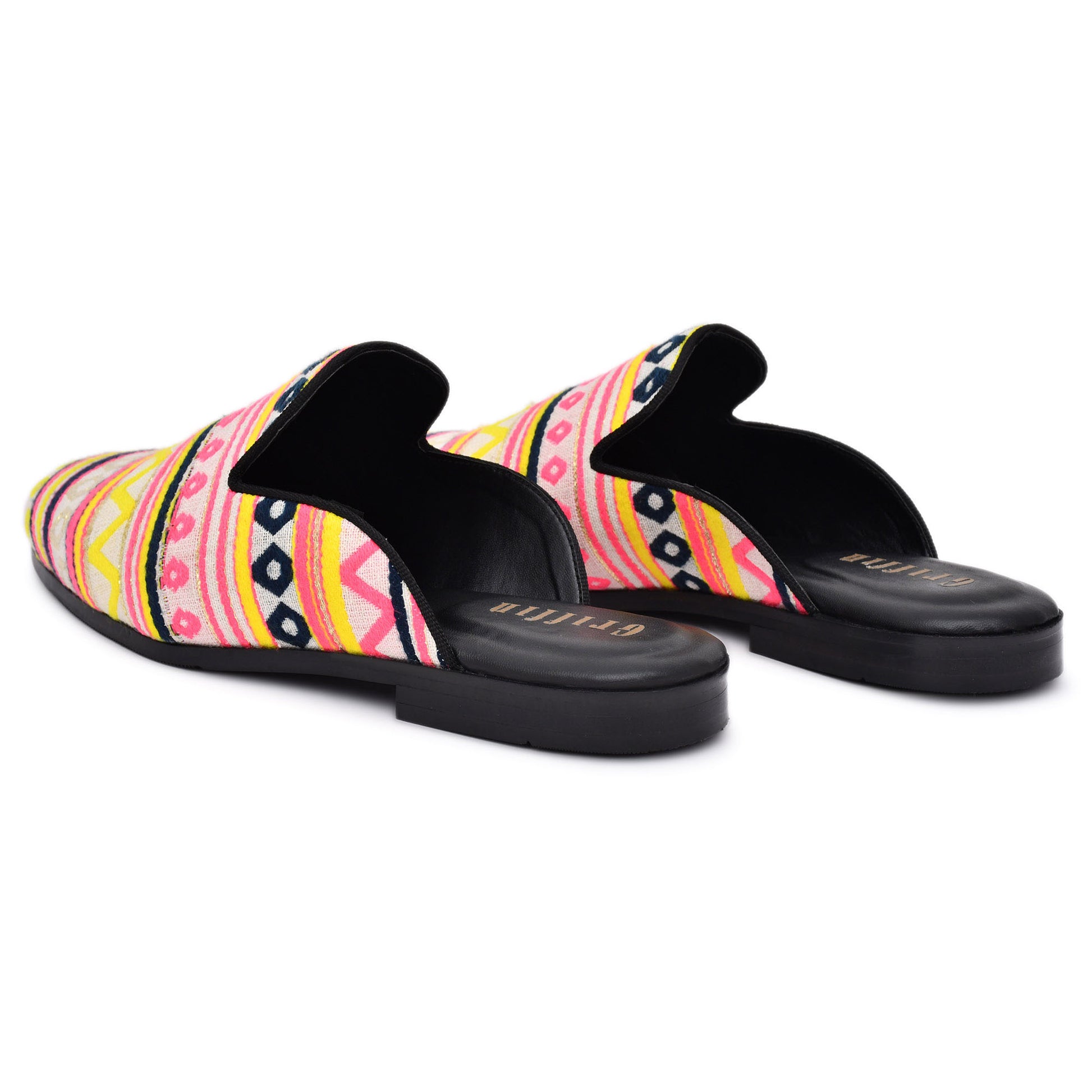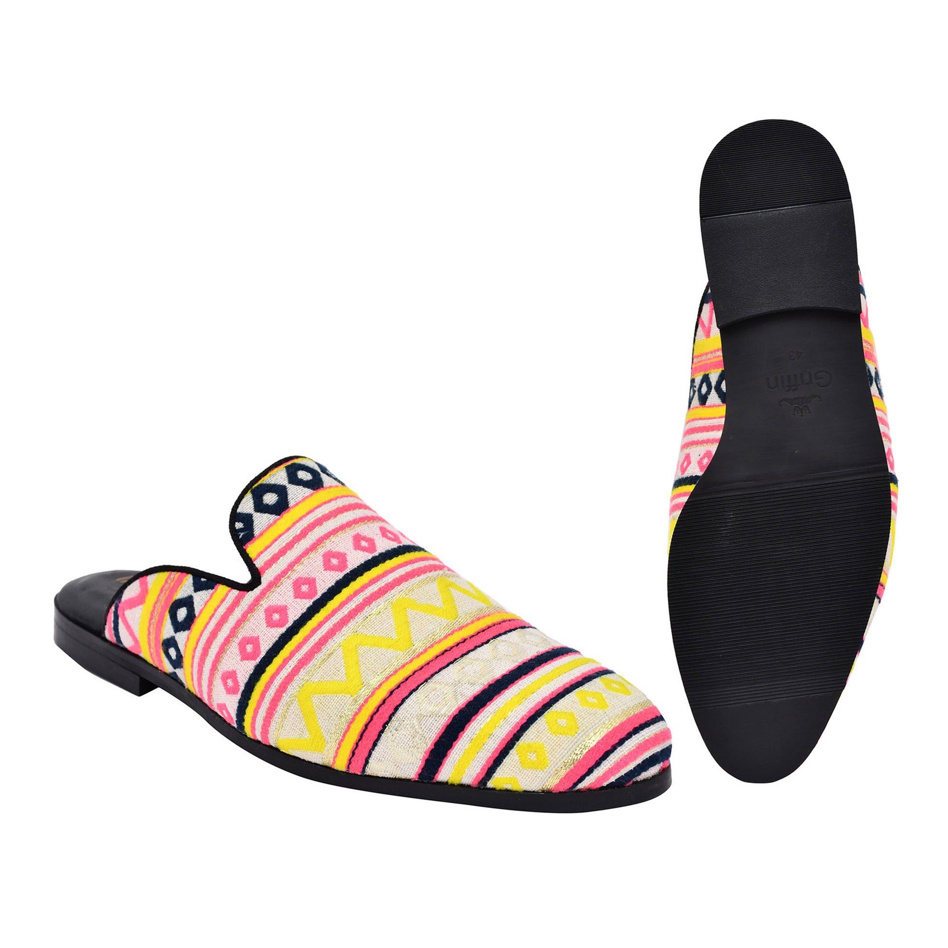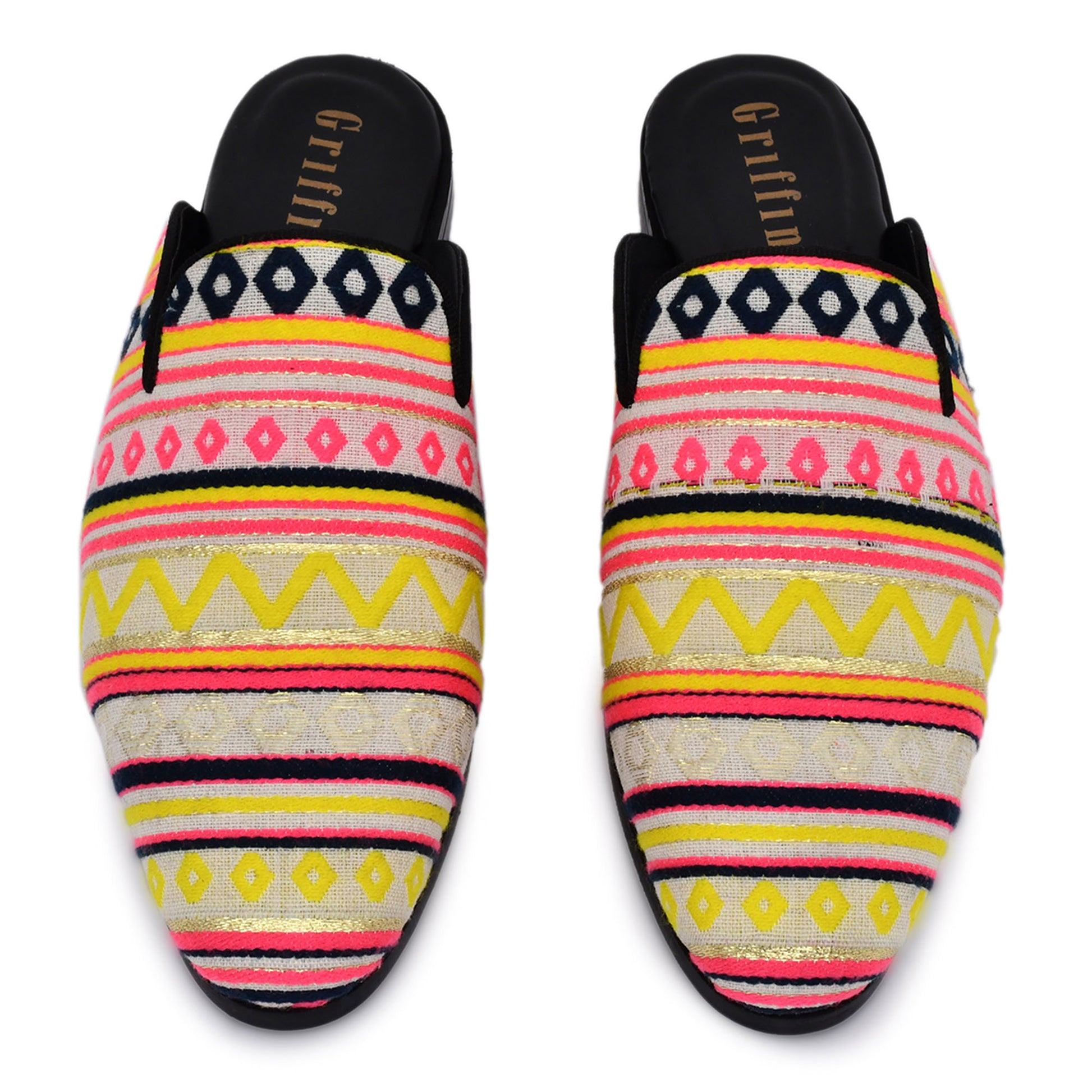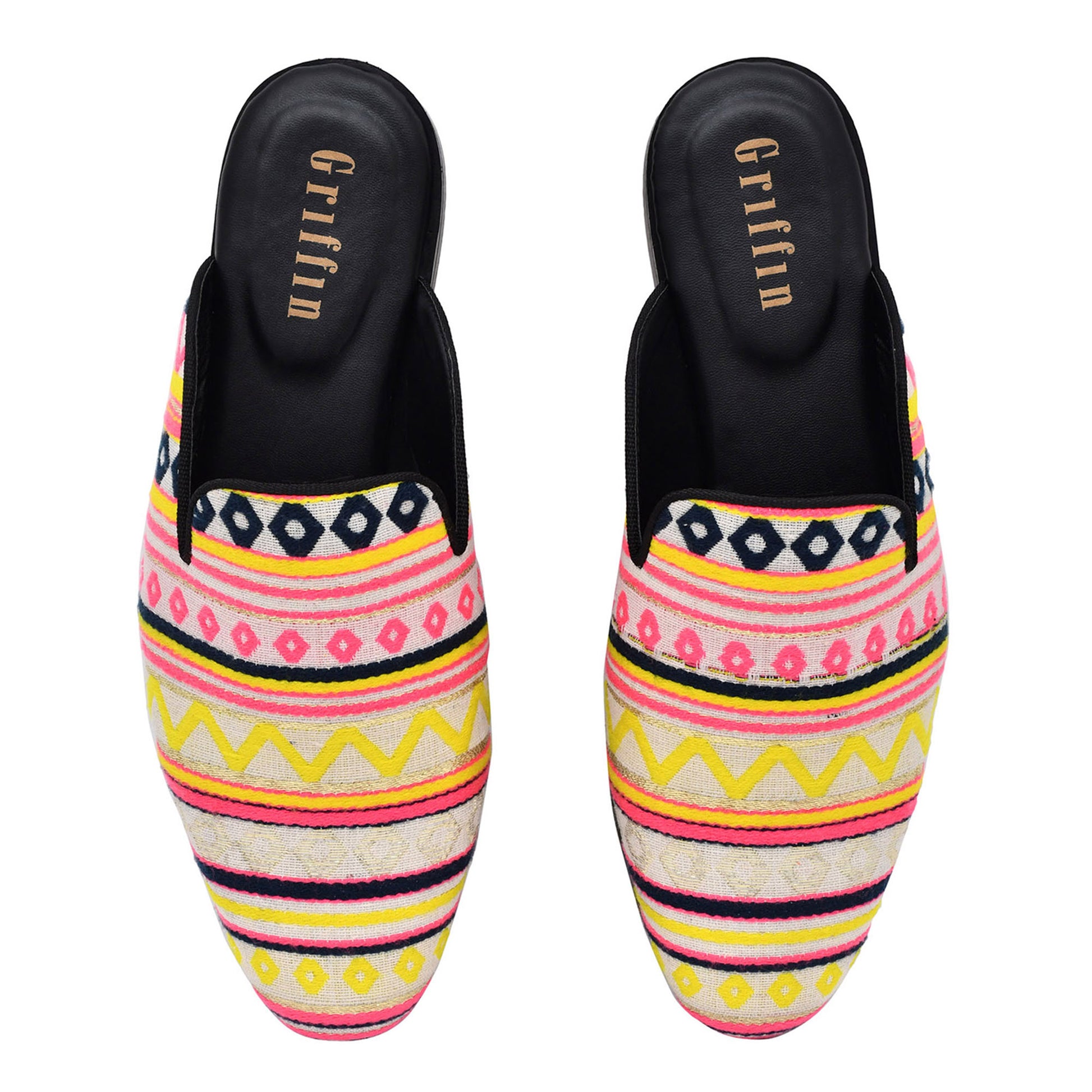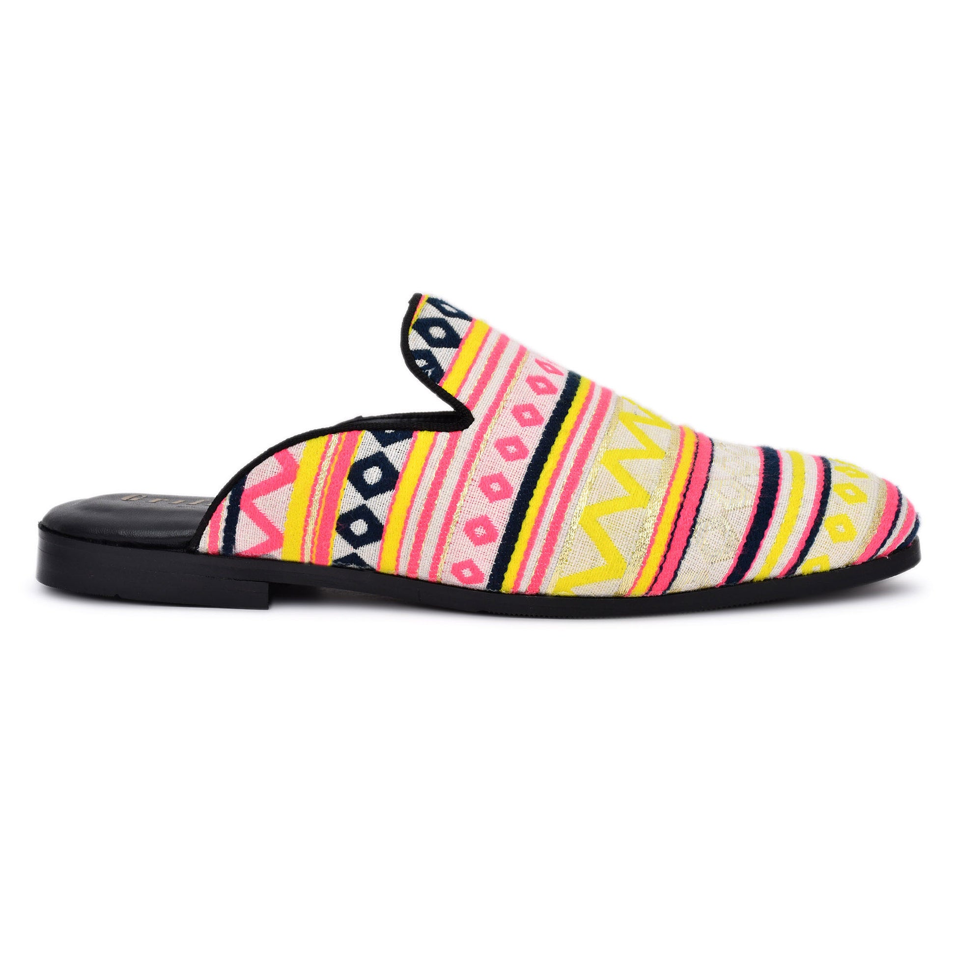 - The multi fabric transitions to a beautiful Stripes tone throughout the body of the shoe.