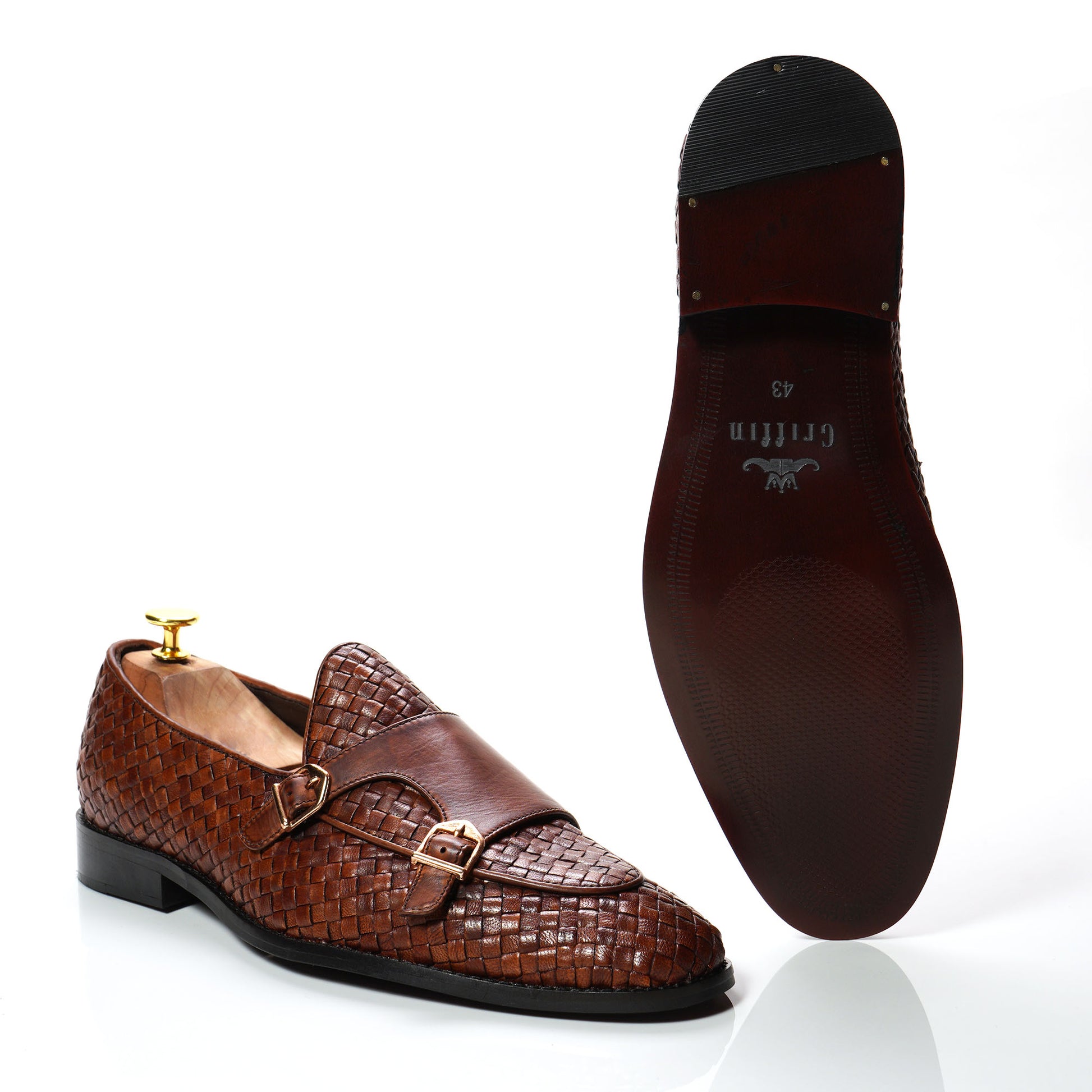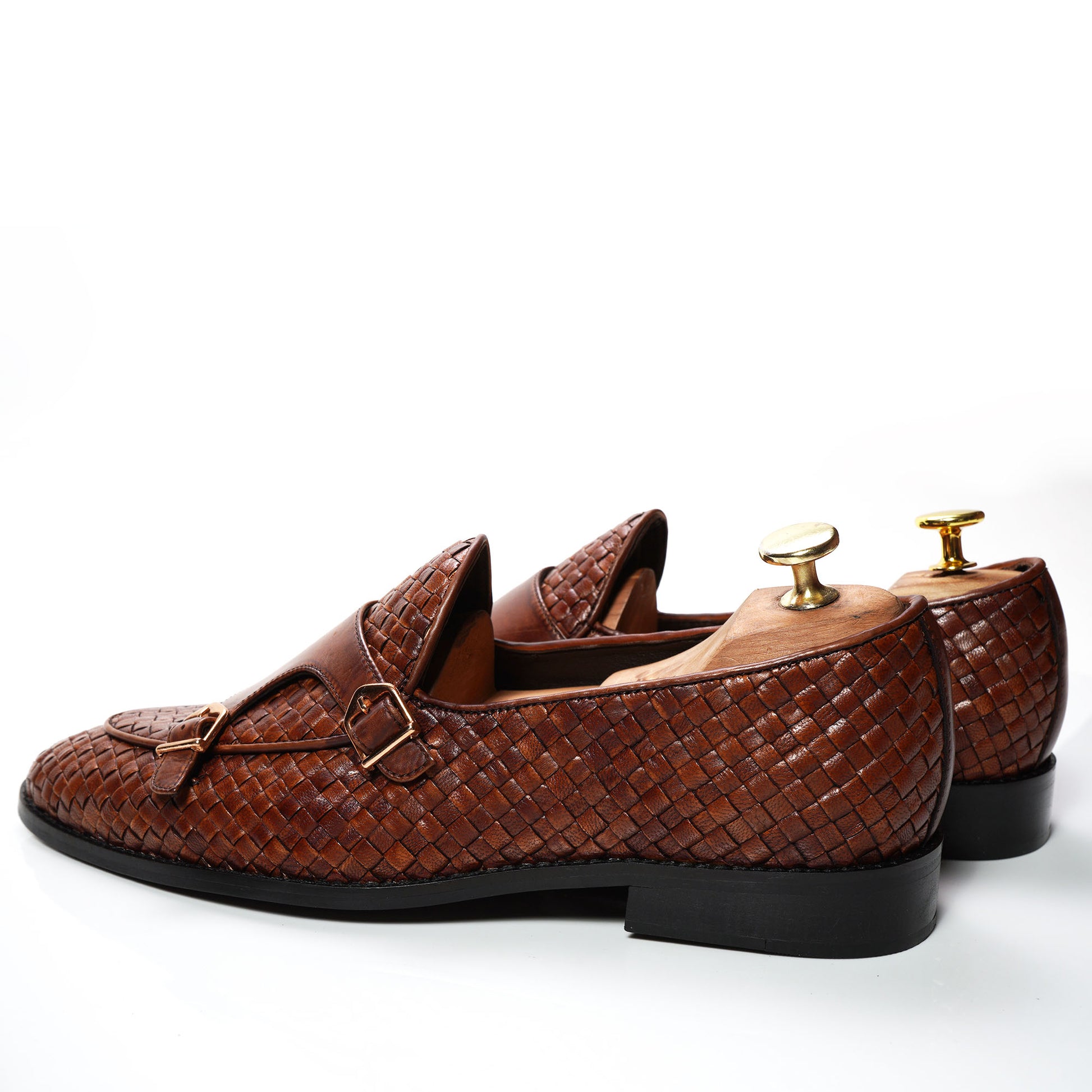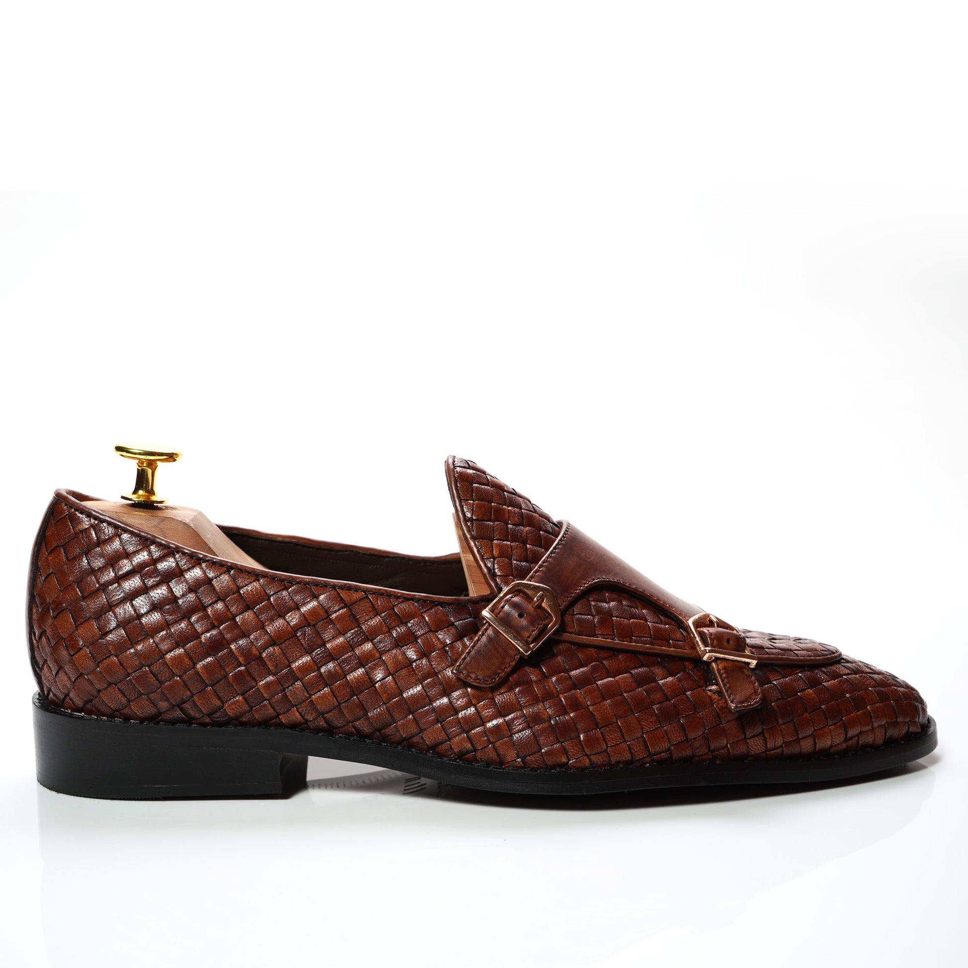- The WOVEN LEATHER transitions to a beautiful BROWN tone throughout the body of the shoe.