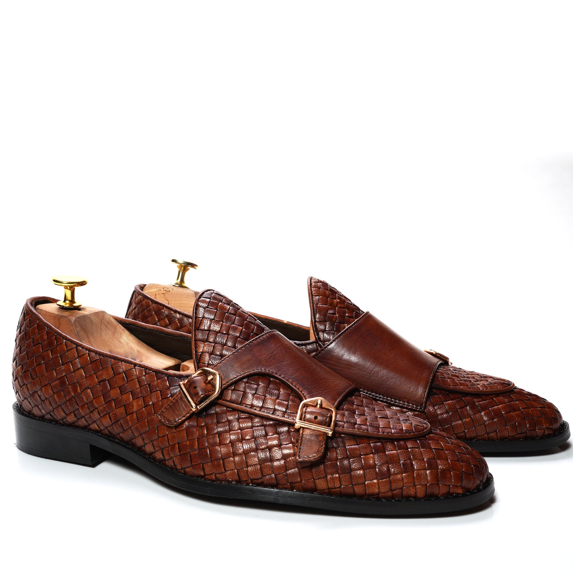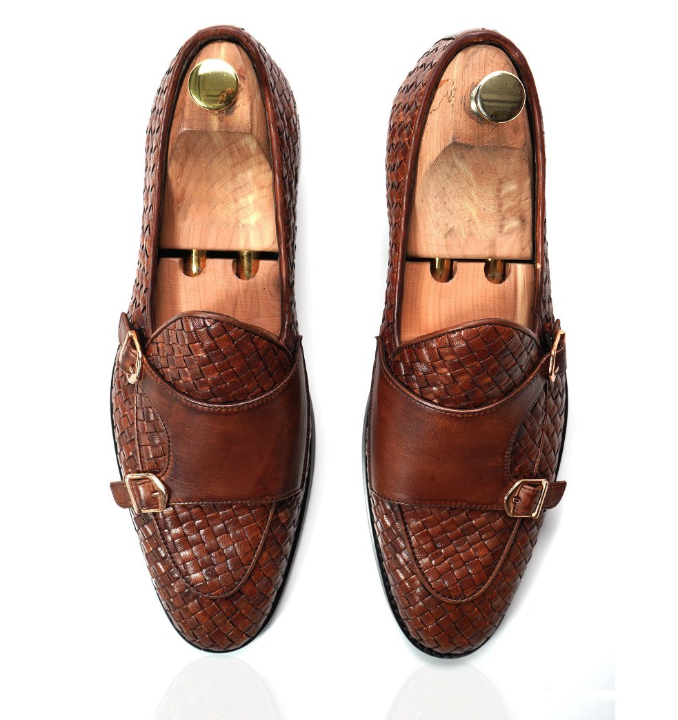 - HAND WOVEN LEATHER BROWN TONE BATWING MONK