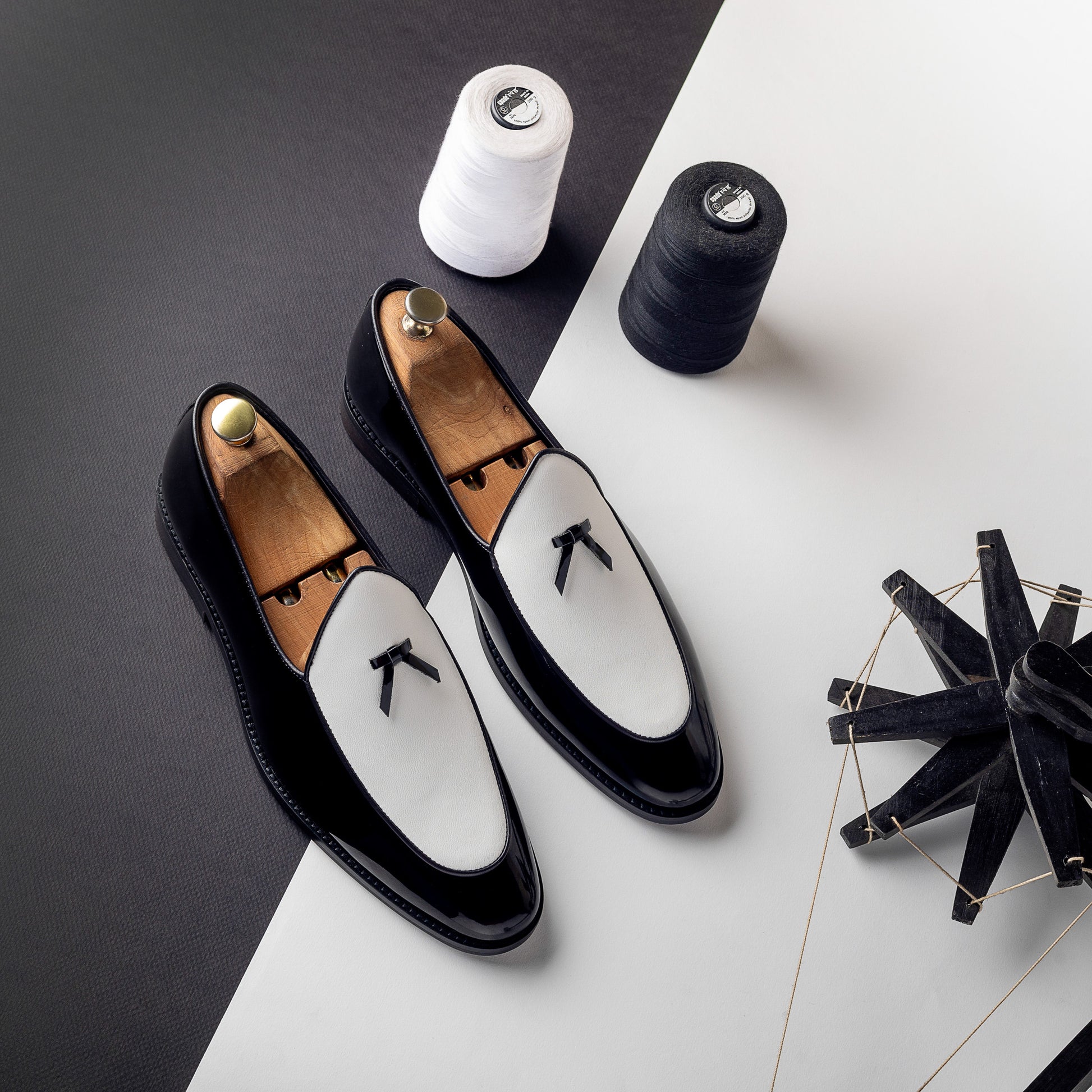 Style- tuxido suit loafers / Yatch Party men Loafer shoes / Date night patent shoes