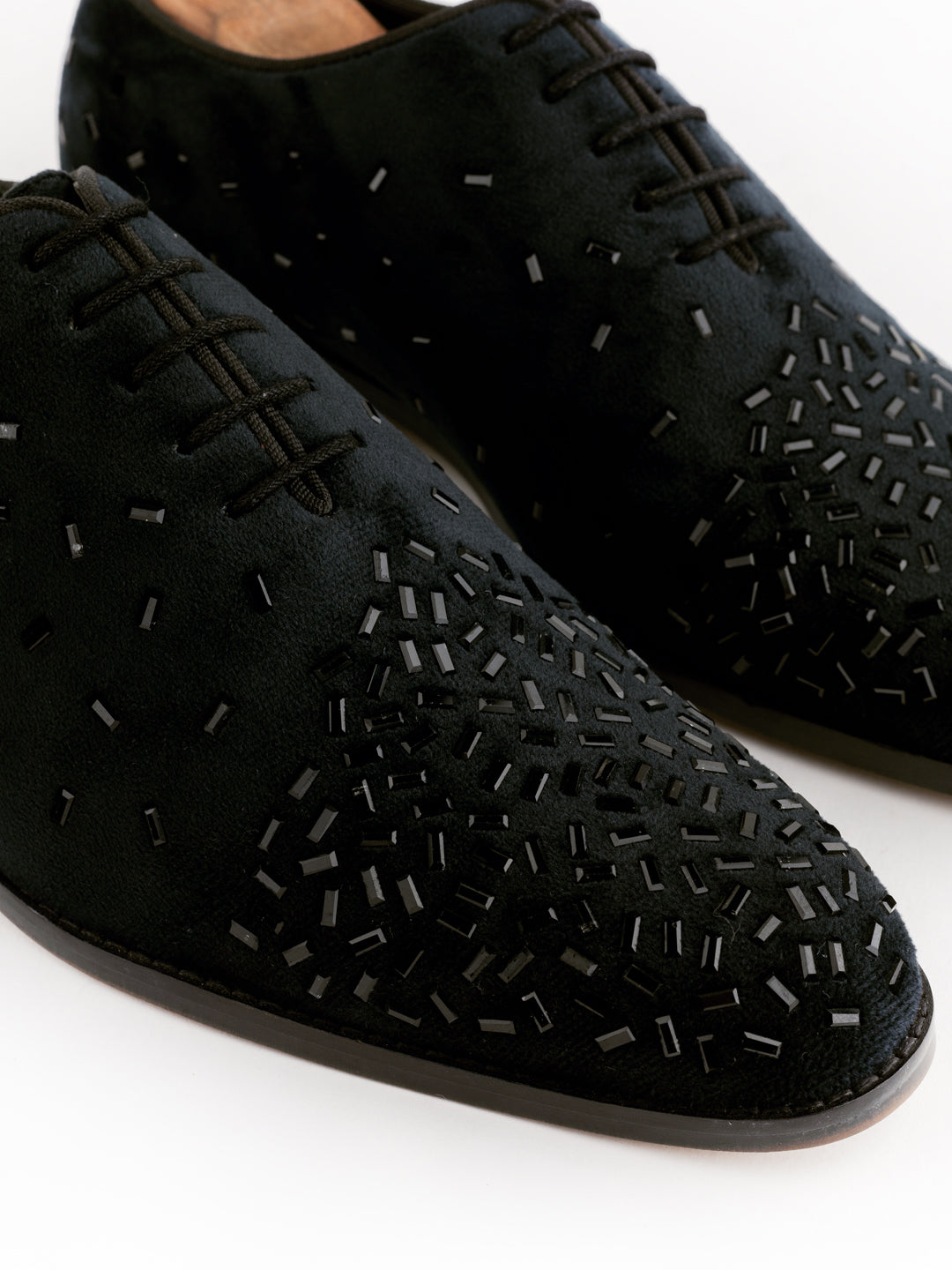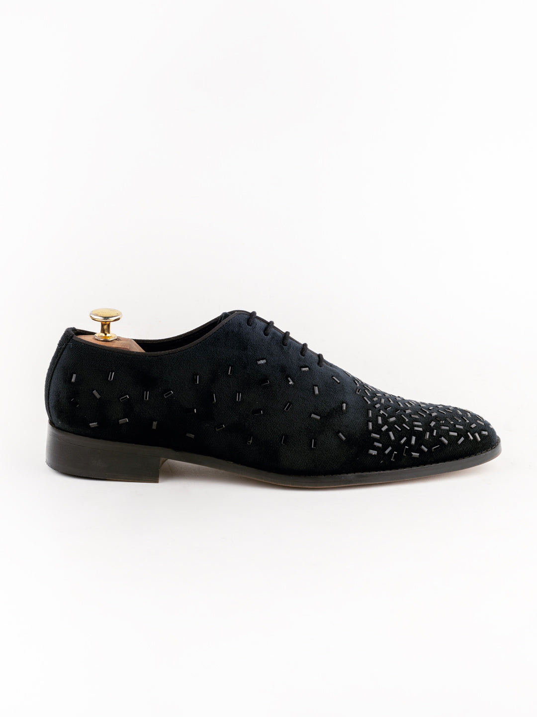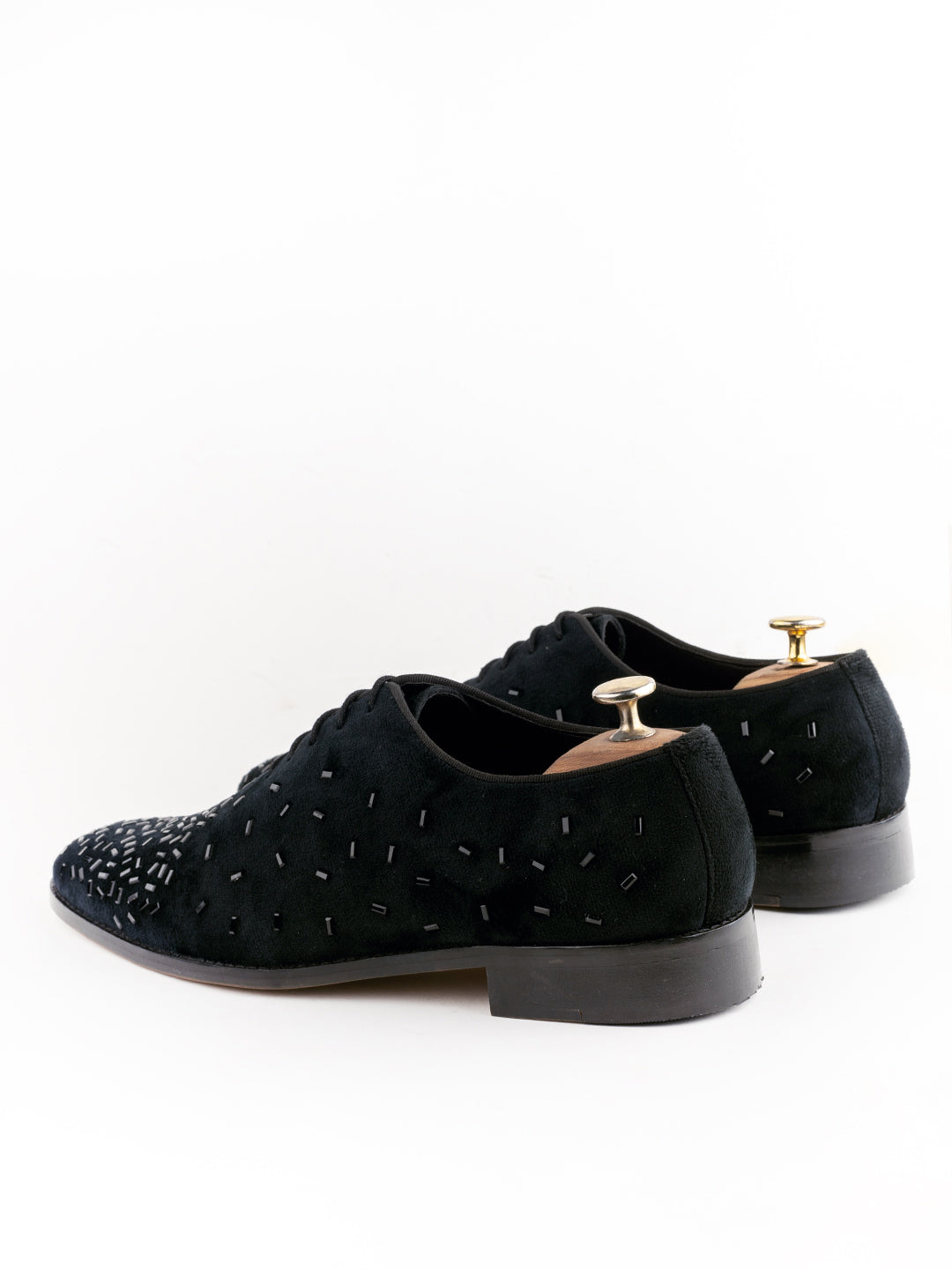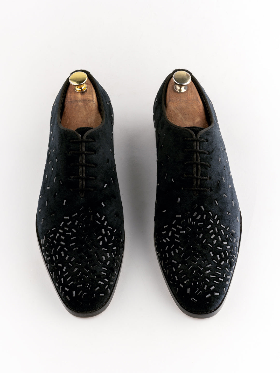 DETAIL- imported velvet men laceup shoes with siroski detailing for glossy look