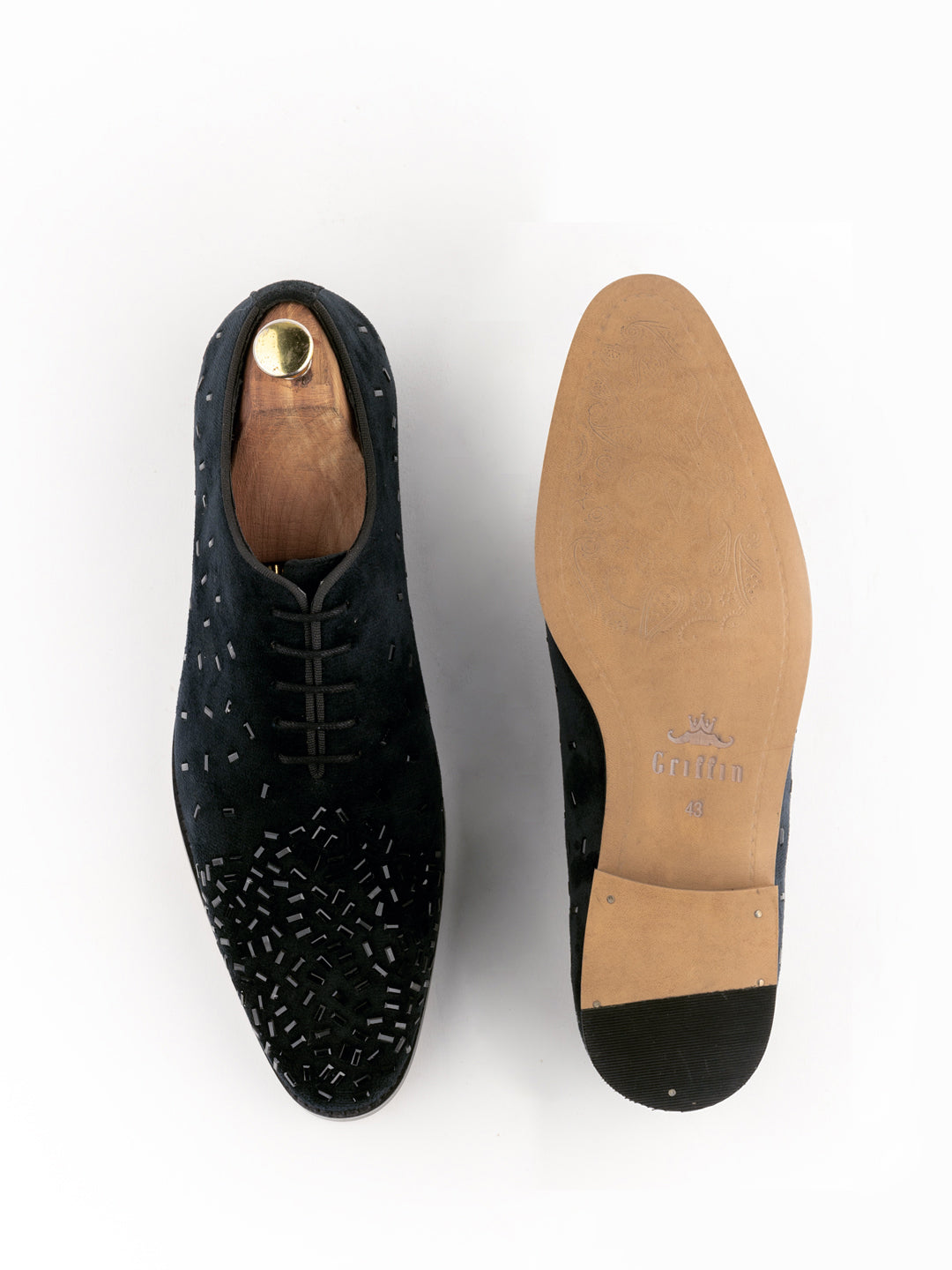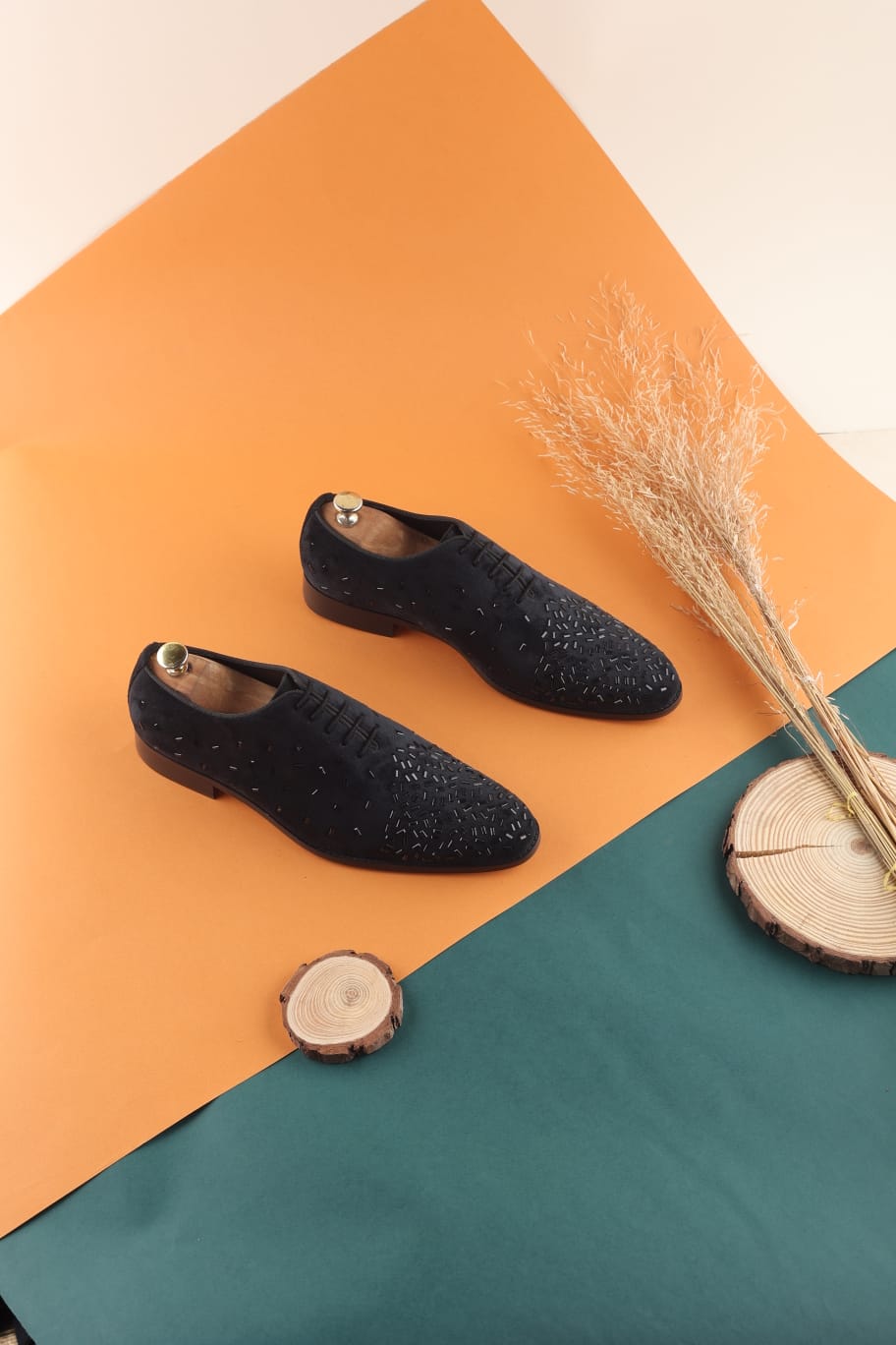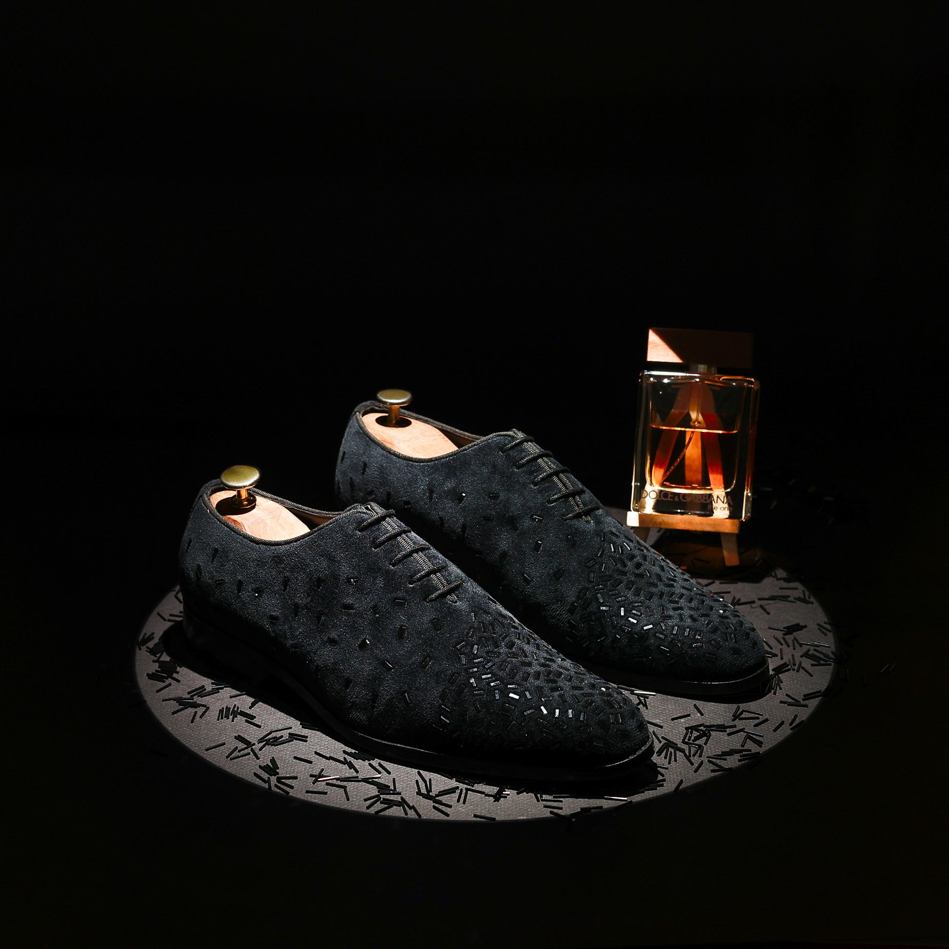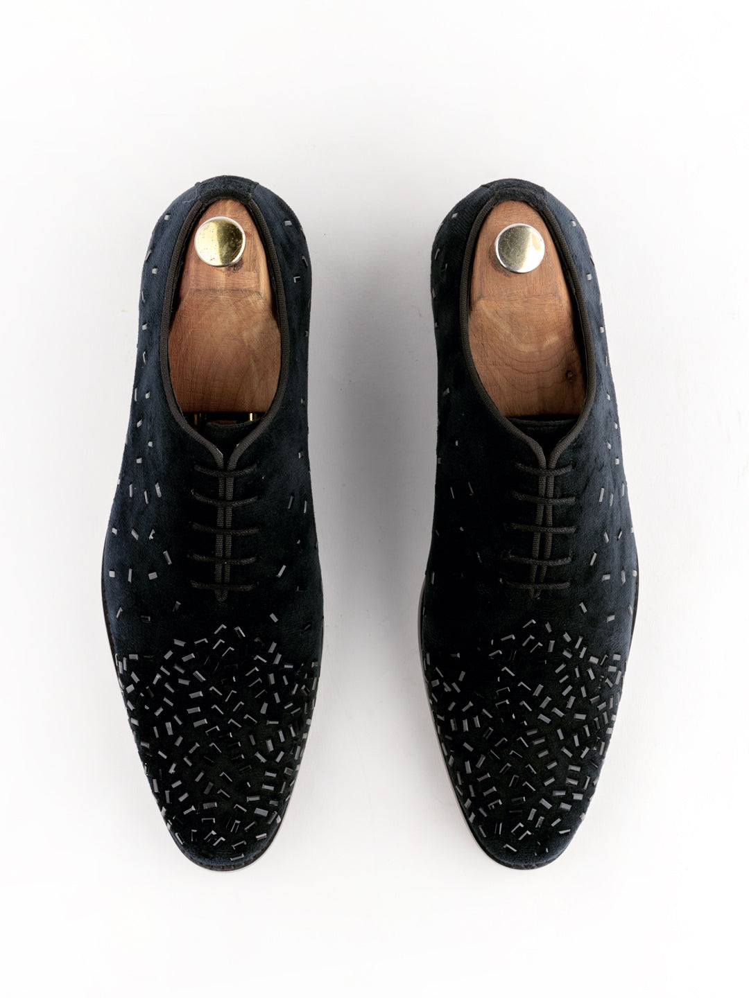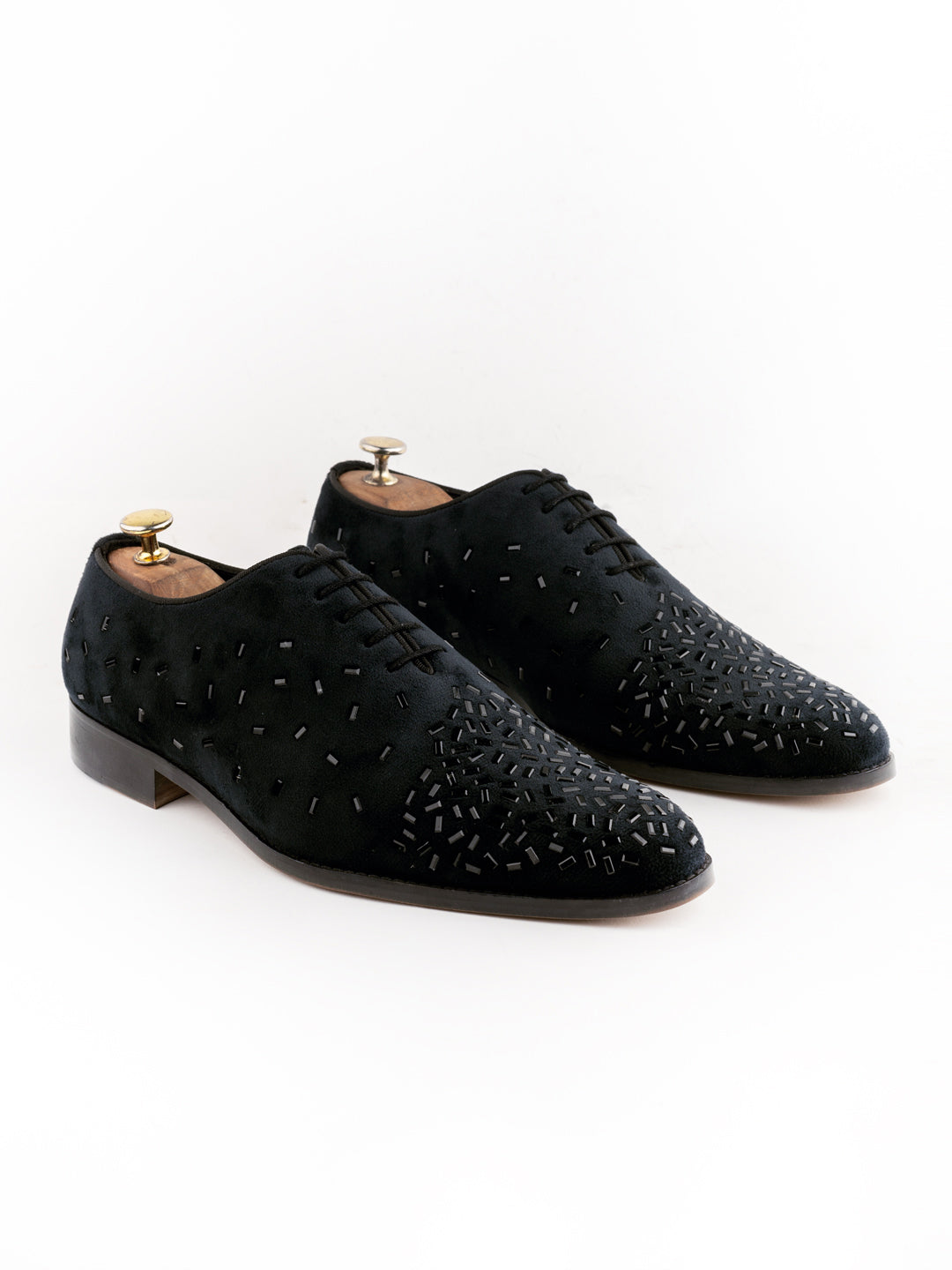 DETAIL- imported velvet men laceup shoes with siroski detailing for glossy look