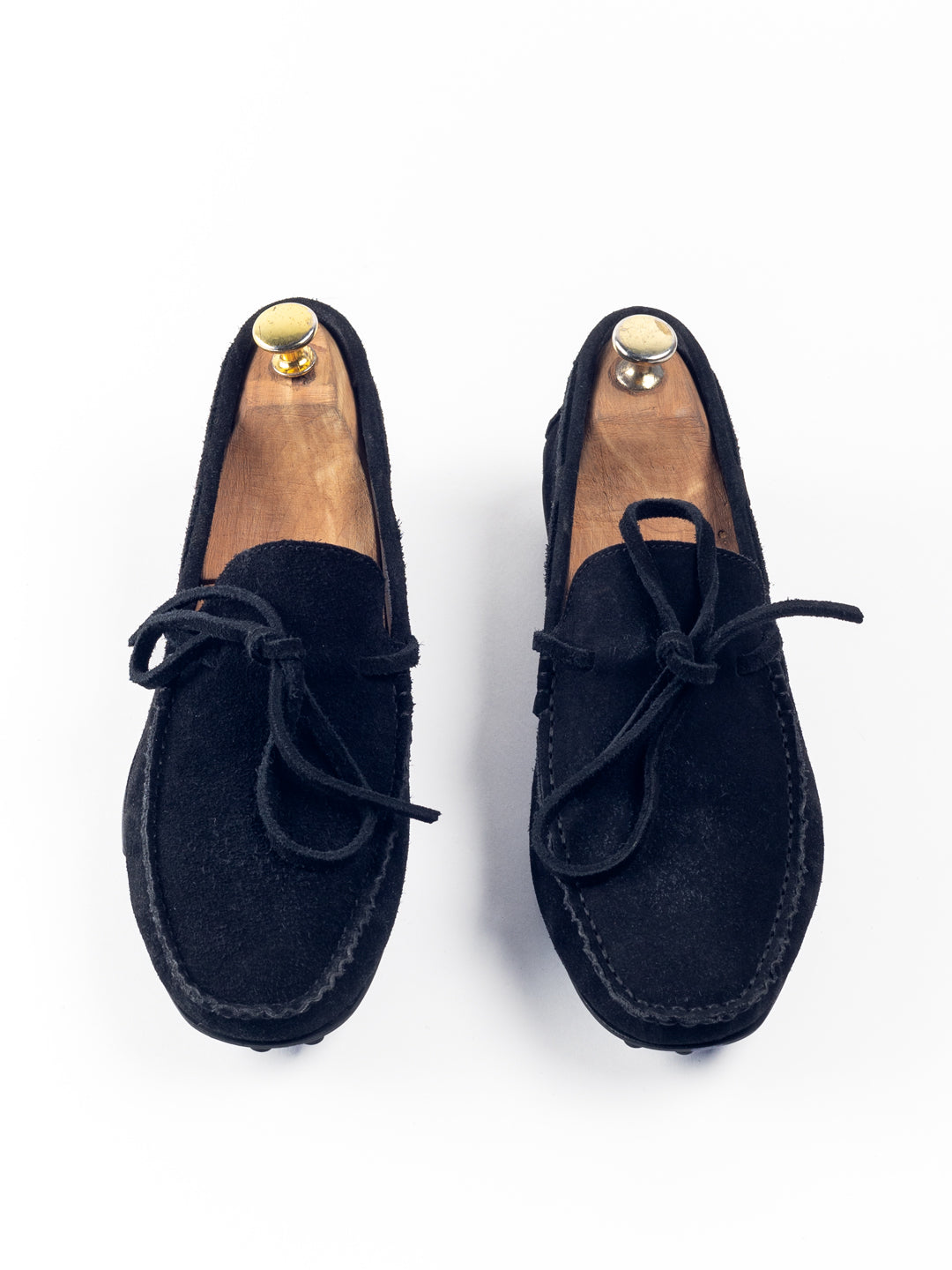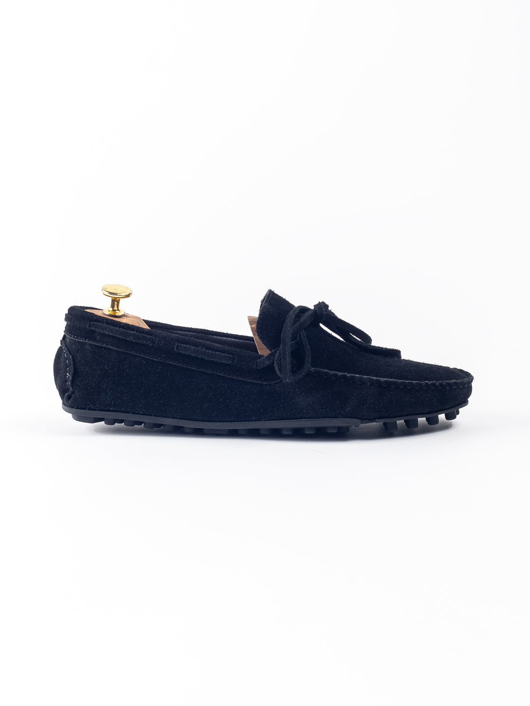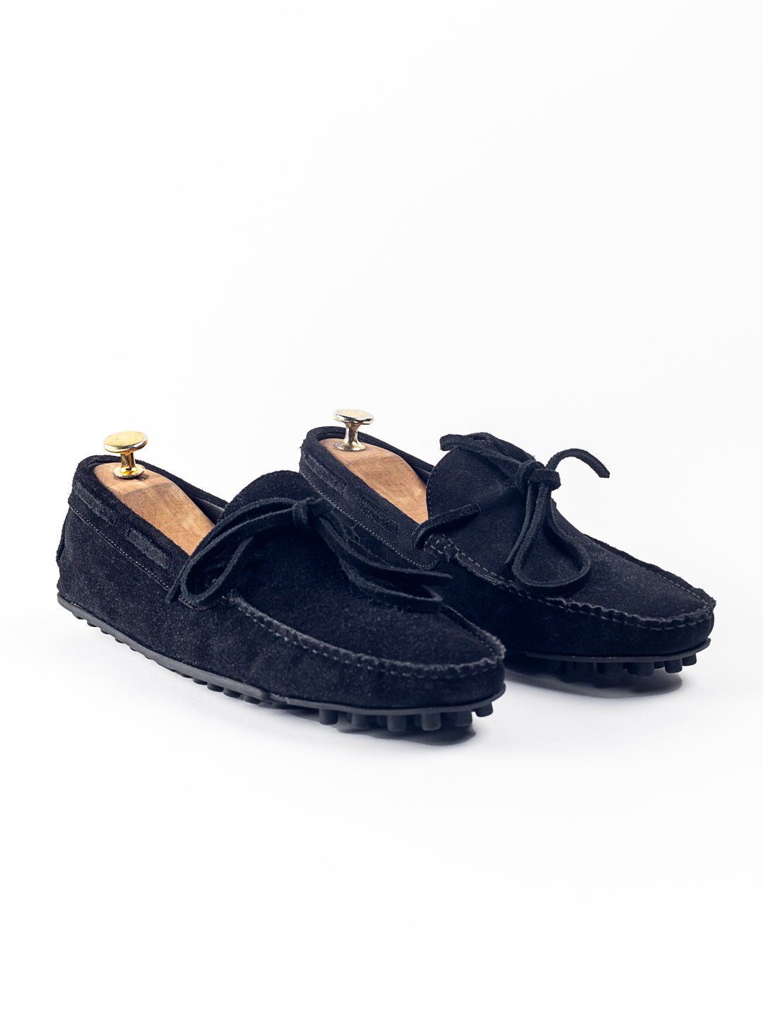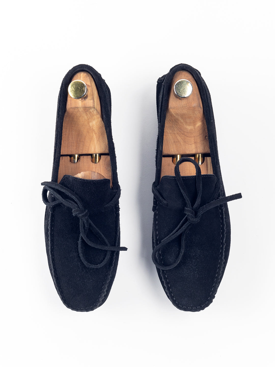 - BLACK DRIVING LOAFERS WITH TIE LACE ON TOP