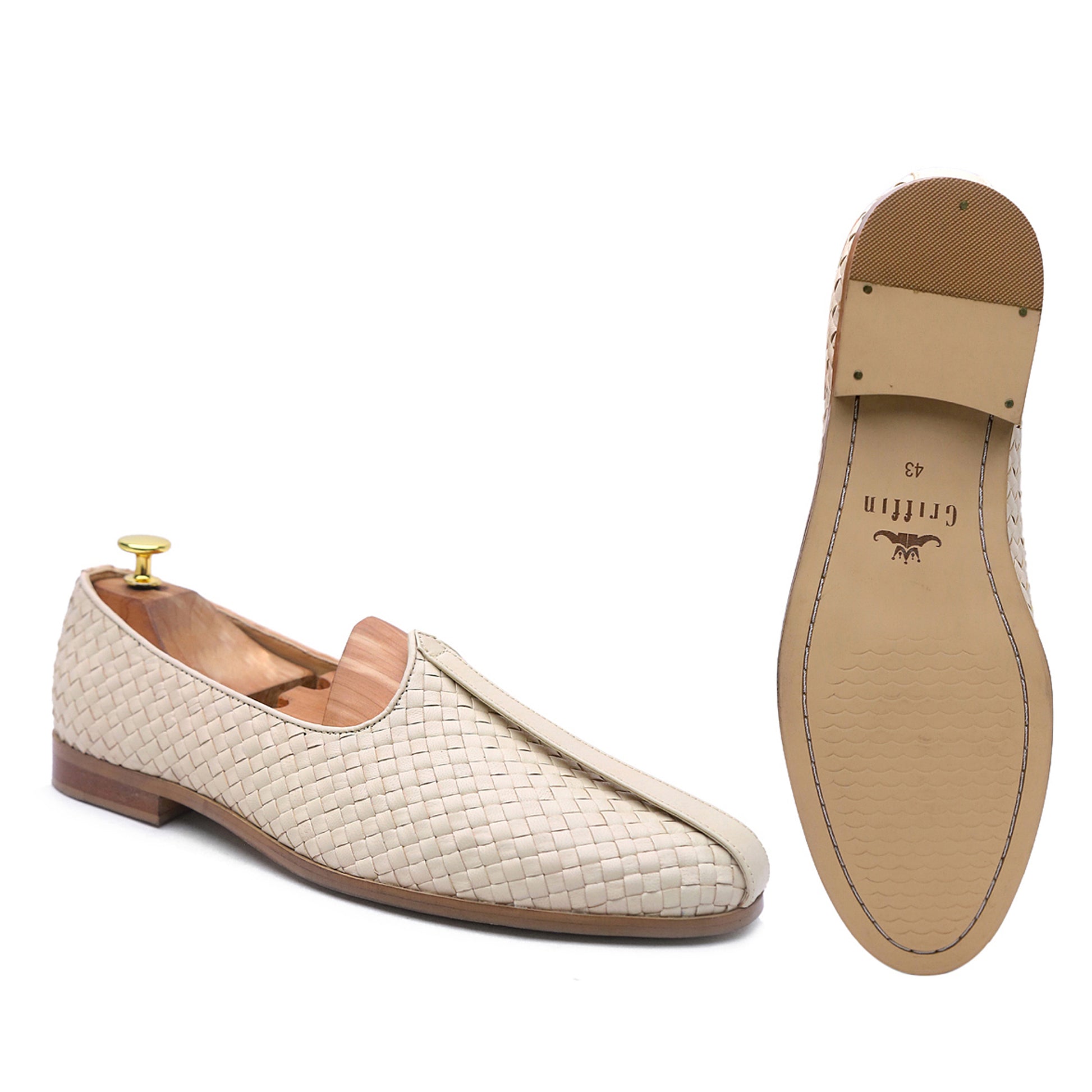 - The leather transitions to a beautiful vanilla cream tone throughout the body of the shoe.