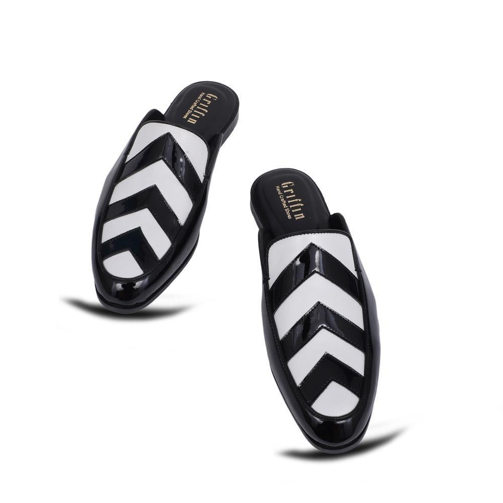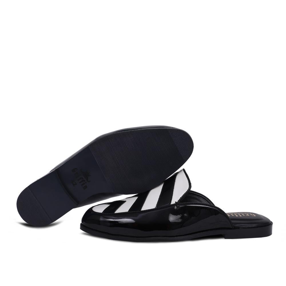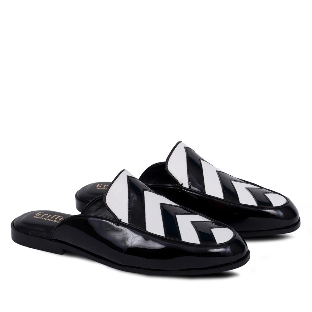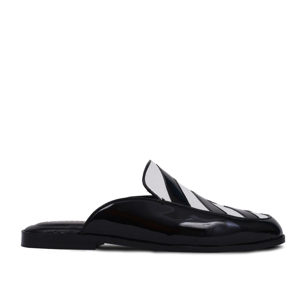 - BLACK WHITE PATENT MULE