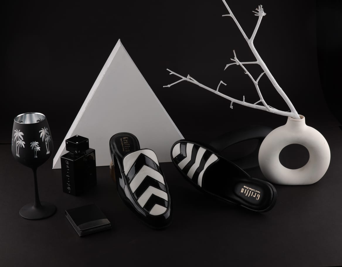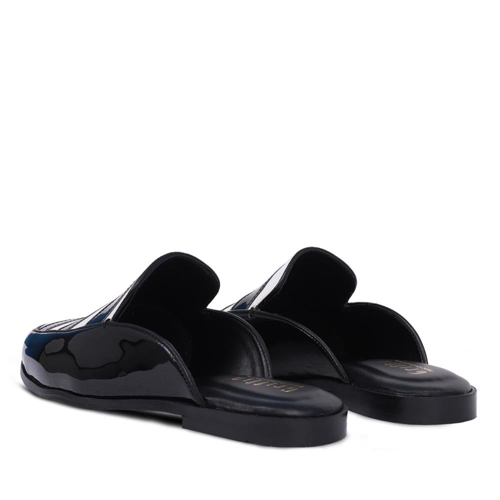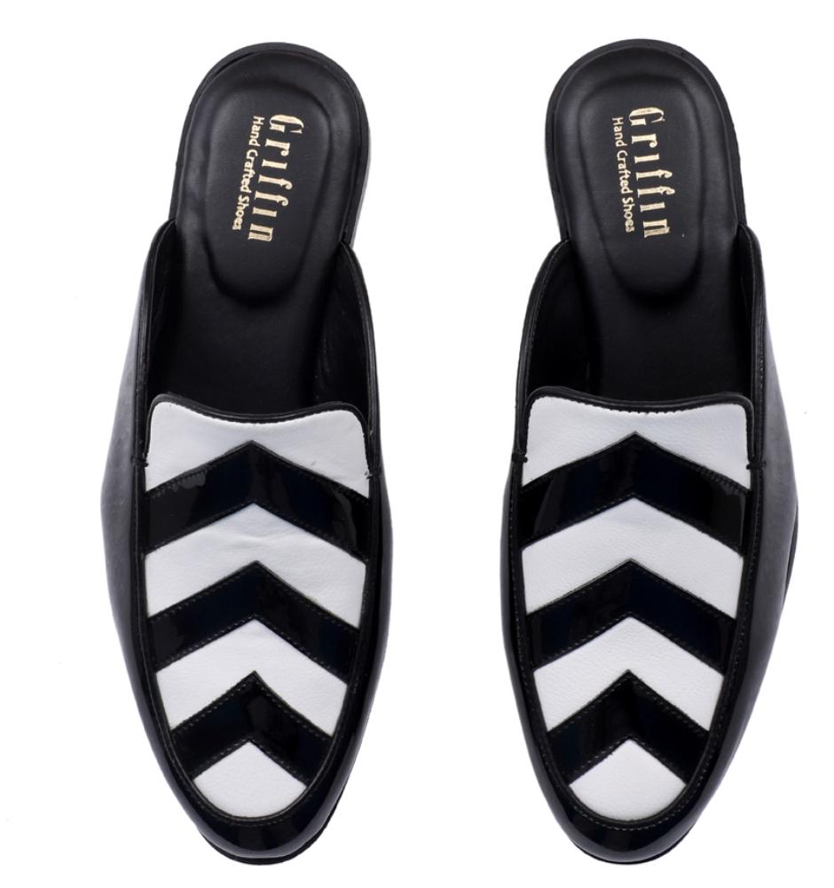 - BLACK WHITE PATENT MULE