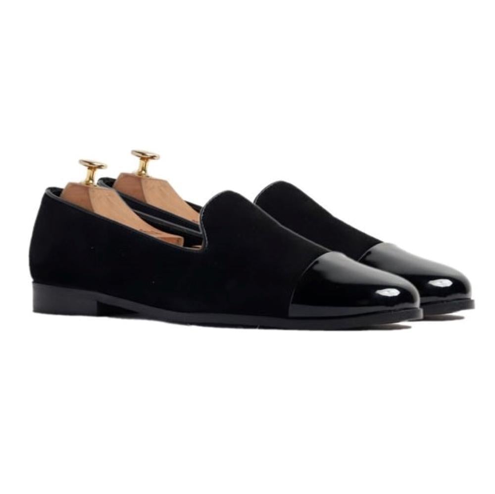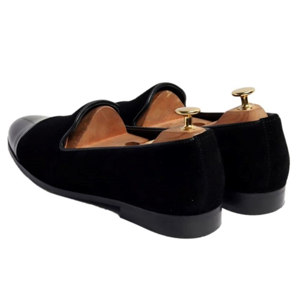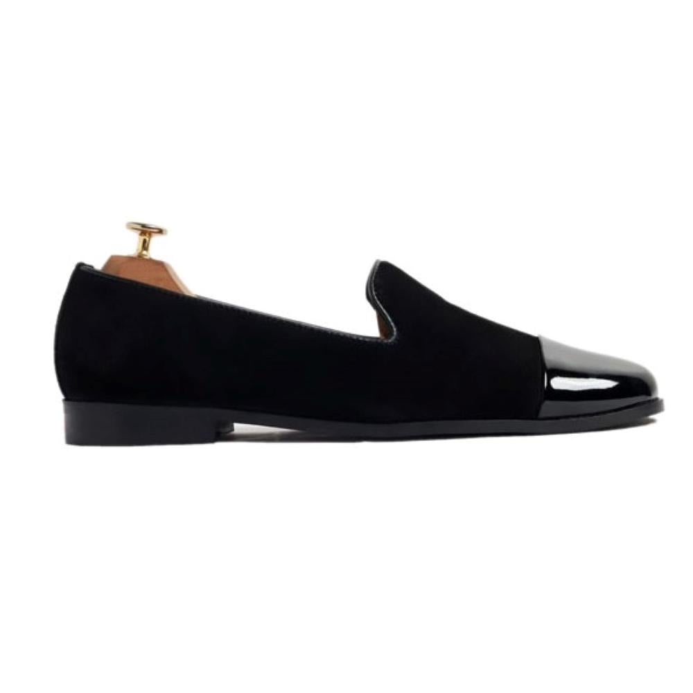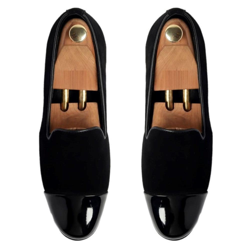 - The suede and patent mix transitions to a beautiful black mat n glossy tone throughout the body of the shoe.