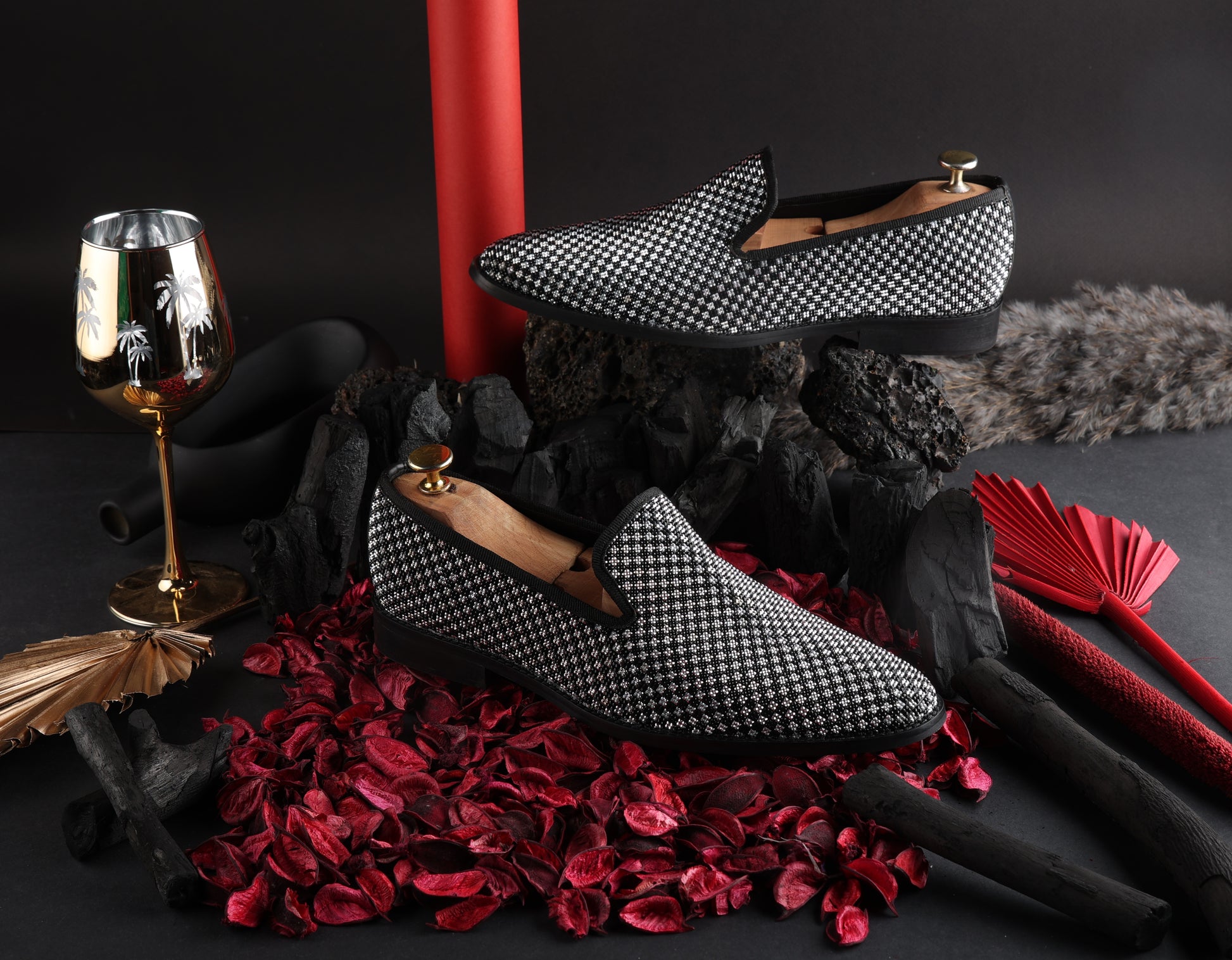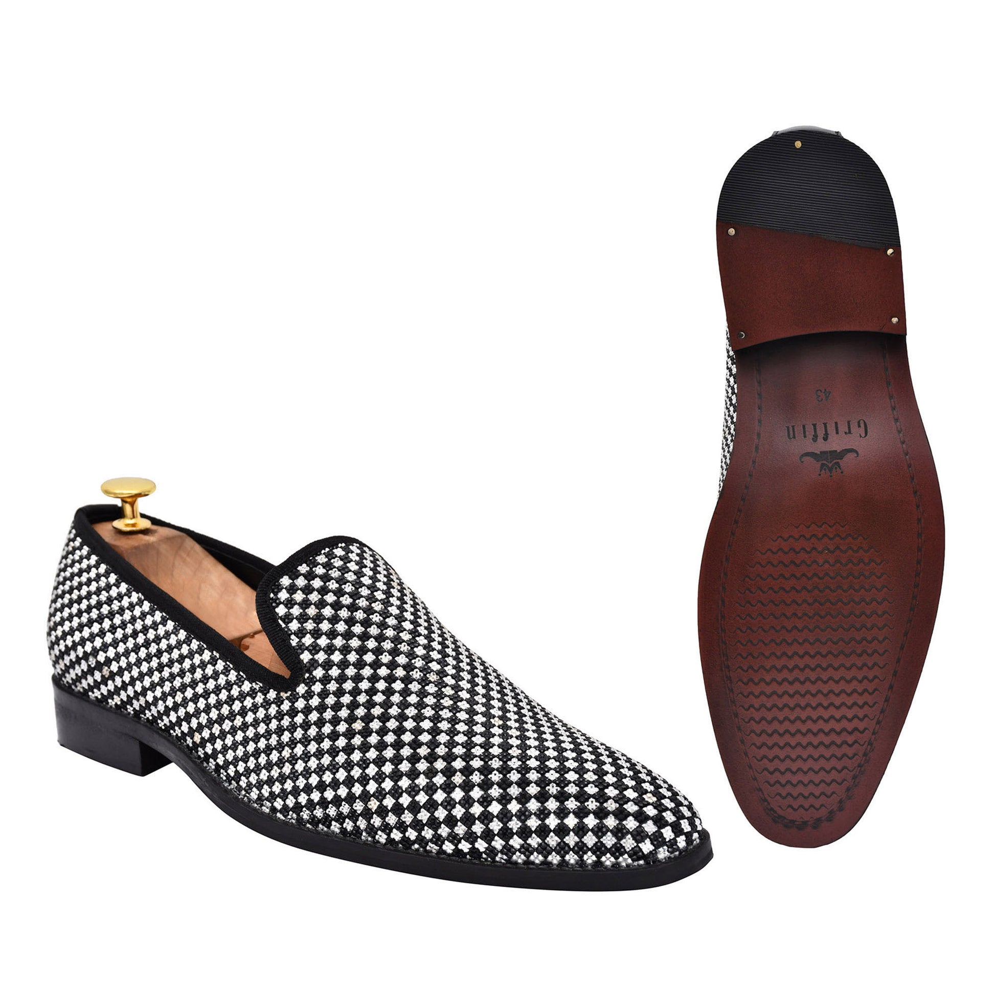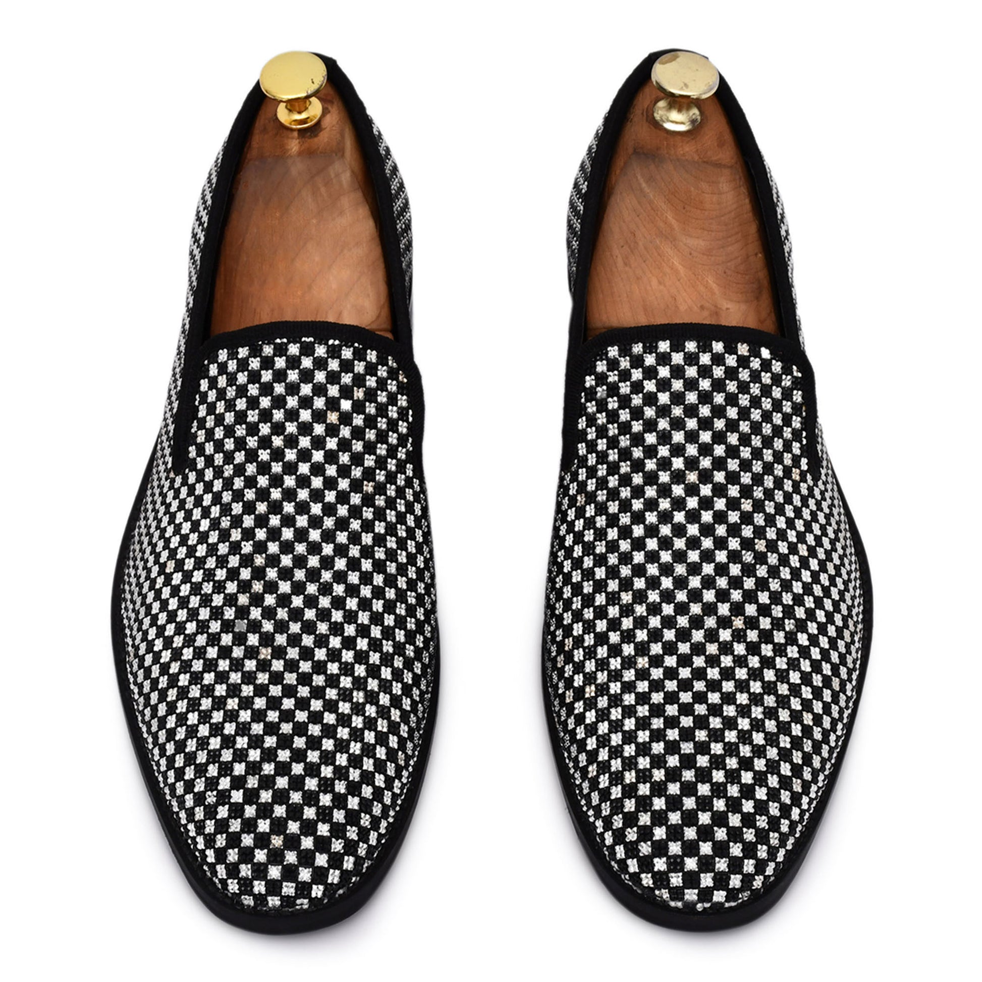 - Diamond Studded Chess Slip-on in faux leather to make your night super glamorous.