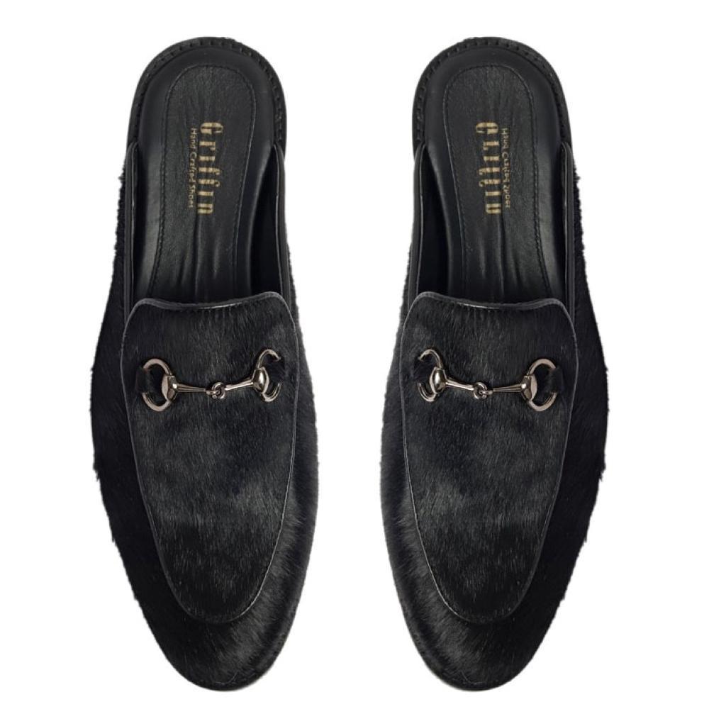 - Black Pony hair Mules