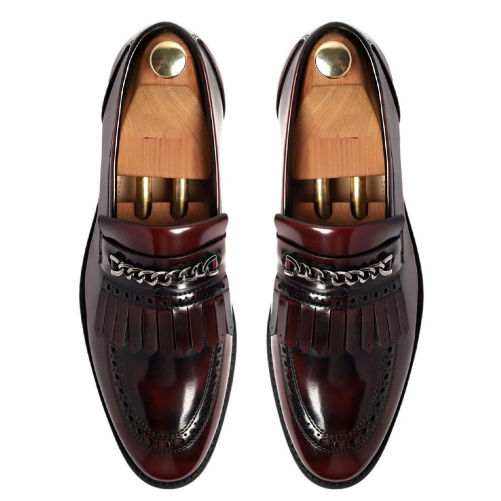- COCOA SHADED HAND-POLISHED Faux leather BELGIAN LOAFERS WITH TON-SUR-TON GROS-GRAIN PIPING AND FAUX LEATHER FRINGED BANDS. THE MATTE PAGINATION OF THE FAUX LEATHER IS HAND-REMOVED WITH QUICK MACHINE BRUSHING BY ADDING A METAL BELT ON TOP AND GIVES THE SHOE A UNIQUE GLOSSY-EFFECT. HANDCRAFTED AND DESIGNED BY VIGEVANO, ITALY, ACCORDING TO THE TRADITIONAL "A SACHET" TECHNIQUE WITH SEEP LINING AND HANDCRAFTED LEATHER SOLES.